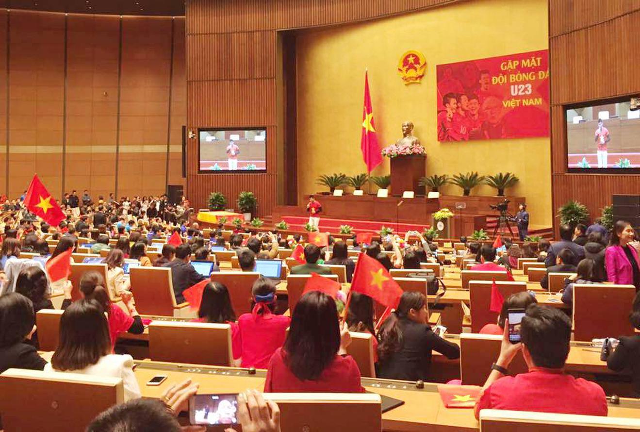 Toàn cảnh buổi gặp mặt Đội bóng đá U23 Việt Nam tại nhà Quốc hội. Ảnh: TN