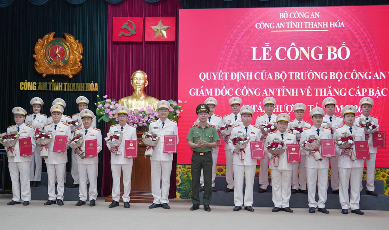 Thừa ủy quyền của Bộ trưởng Bộ Công an, Thiếu tướng Tô Anh Dũng, Giám đốc Công an tỉnh Thanh Hoá đã trao quyết định thăng cấp bậc hàm từ Thượng tá lên Đại tá đối với 19 trưởng phòng và tương đương.