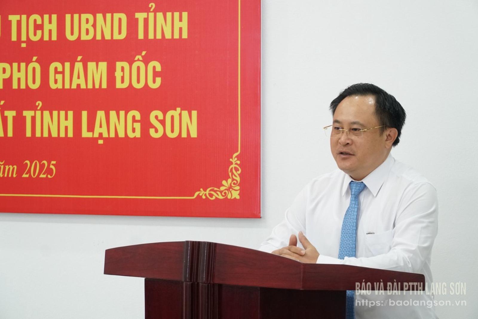 Đồng chí Lương Trọng Quỳnh, Phó Chủ tịch UBND tỉnh phát biểu giao nhiệm vụ cho tân Phó Giám đốc Trung tâm Phát triển quỹ đất tỉnh. Ảnh: Baolangson.vn