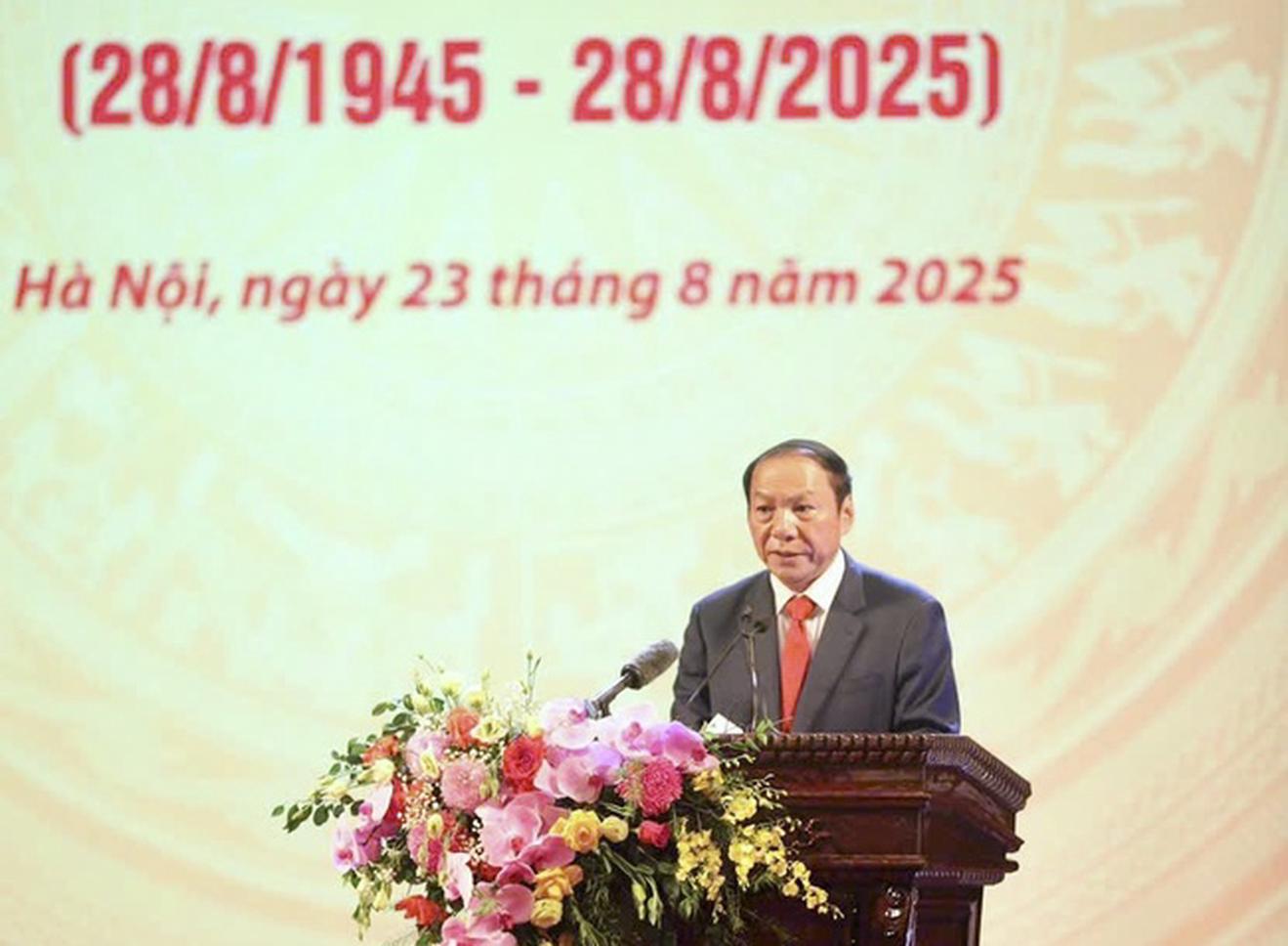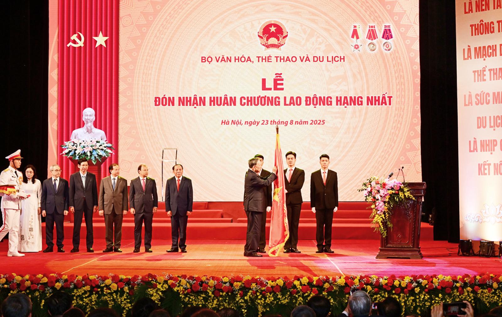 Tổng Bí thư Tô Lâm trao Huân chương Lao động hạng Nhất cho Bộ VHTTDL trong dịp kỷ niệm 80 năm - sự ghi nhận cao quý cho những đóng góp của toàn ngành. Ảnh: TITC