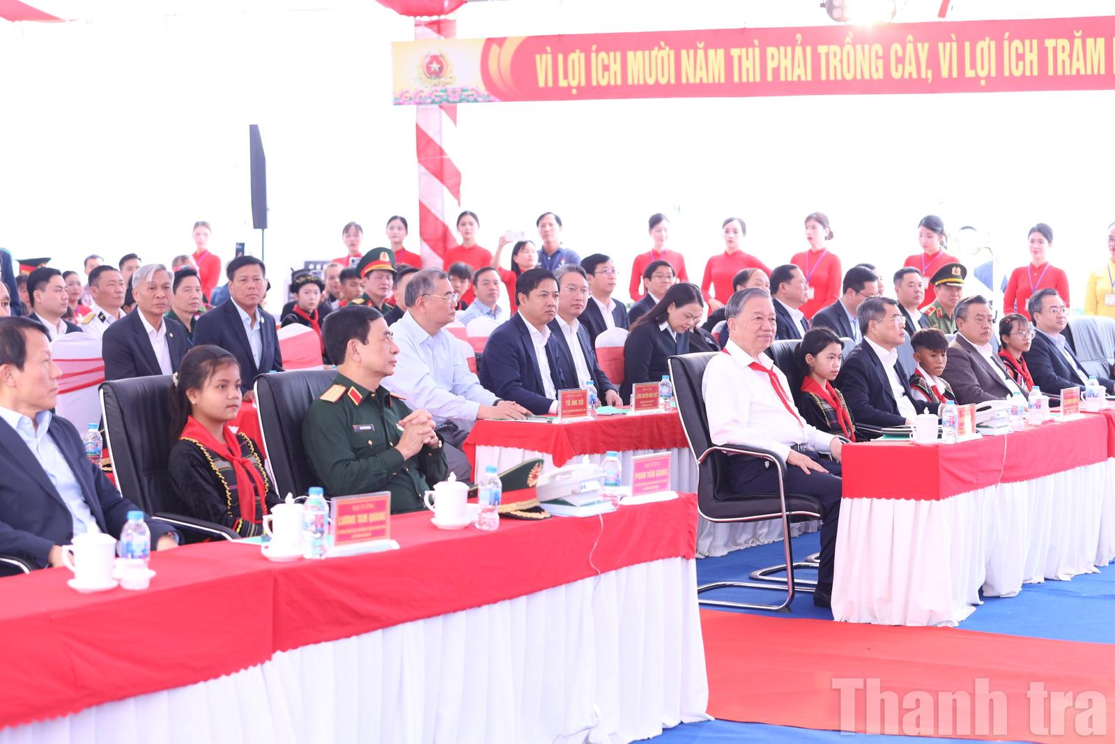 Dự chương trình có các đồng chí Ủy viên Bộ Chính trị: Lê Minh Hưng, Trưởng Ban Tổ chức Trung ương; Trần Sỹ Thanh, Bí thư Trung ương Đảng, Chủ nhiệm Ủy ban Kiểm tra Trung ương; Phạm Gia Túc, Bí thư Trung ương Đảng, Chánh Văn phòng Trung ương Đảng; Đại tướng Phan Văn Giang, Phó Bí thư Quân ủy Trung ương, Bộ trưởng Bộ Quốc phòng; Đại tướng Lương Tam Quang, Bí thư Đảng ủy Công an Trung ương, Bộ trưởng Bộ Công an; Nguyễn Thanh Nghị, Bí thư Trung ương Đảng, Trưởng Ban Chính sách, chiến lược Trung ương.
