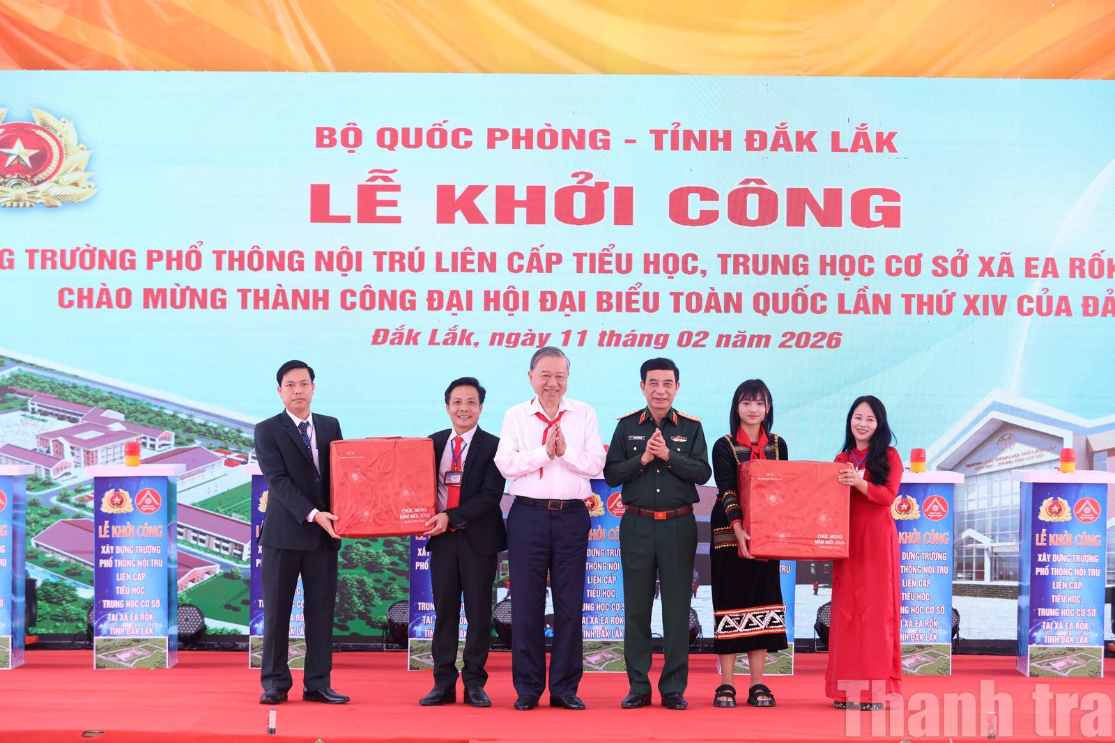 Phát biểu tại lễ khởi công, Tổng Bí thư Tô Lâm khẳng định, việc triển khai xây dựng một trường nội trú liên cấp nhằm bảo đảm điều kiện học tập, sinh hoạt, rèn luyện cho học sinh là rất cần thiết phù hợp với nguyện vọng của nhân dân và nhu cầu phát triển của địa phương. Công trình Trường Phổ thông nội trú liên cấp Tiểu học – THCS xã Ea Rốk không chỉ là một dự án xây dựng trường học mà còn là một công trình mang ý nghĩa xã hội sâu sắc thể hiện sự quan tâm, chăm lo của Đảng và Nhà nước đối với con em đồng bào dân tộc thiểu số ở những vùng đang còn nhiều khó khăn.