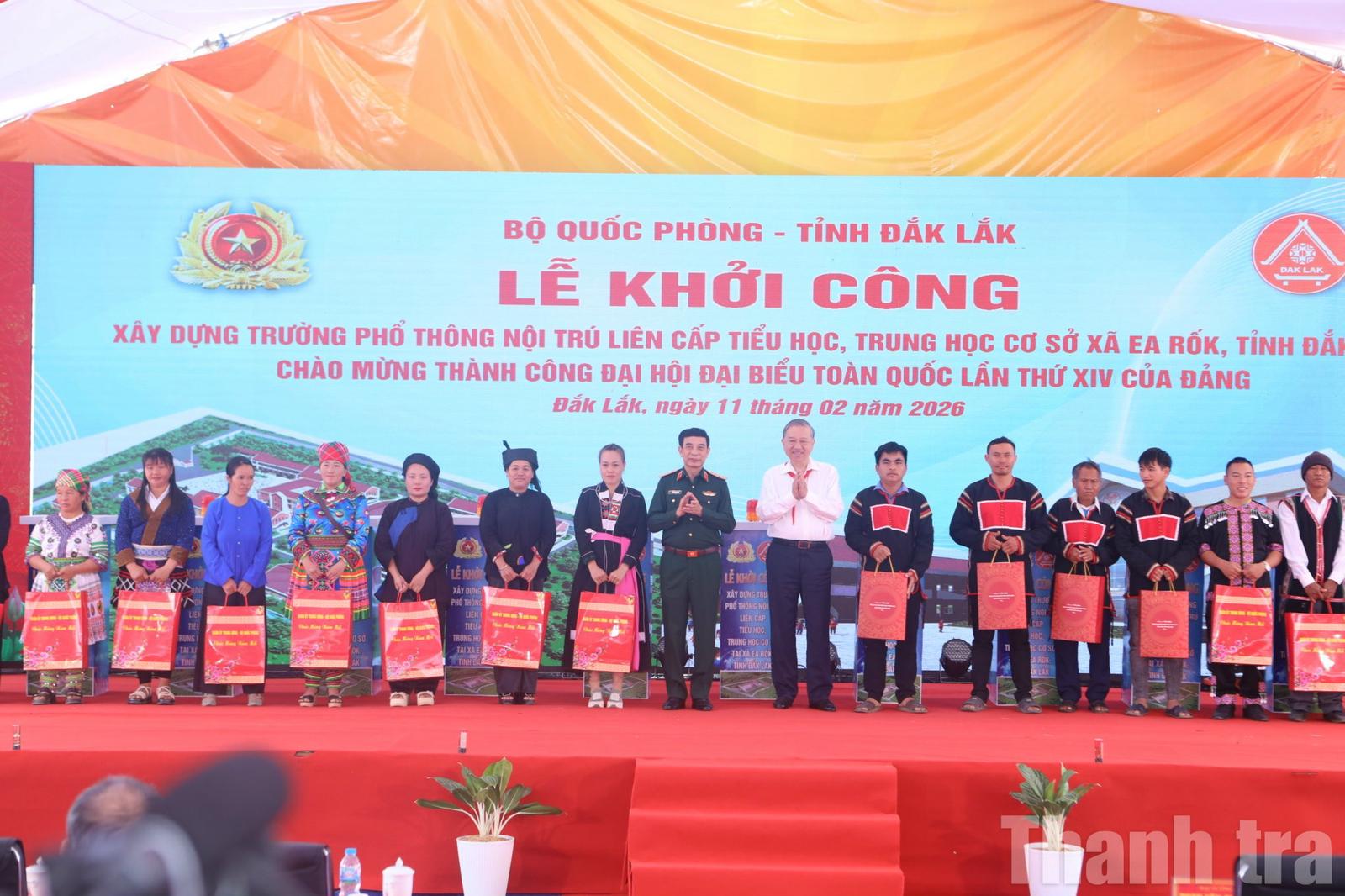 (Thanh tra) - Ngày 11/2, tại xã Ea Rốk, tỉnh Đắk Lắk, Tổng Bí thư Tô Lâm đã dự Lễ khởi công xây dựng Trường phổ thông nội trú liên cấp Tiểu học và Trung học cơ sở xã Ea Rốk - công trình có ý nghĩa đặc biệt quan trọng, góp phần nâng cao điều kiện học tập cho học sinh vùng biên giới, nhất là con em đồng bào dân tộc thiểu số còn nhiều khó khăn.