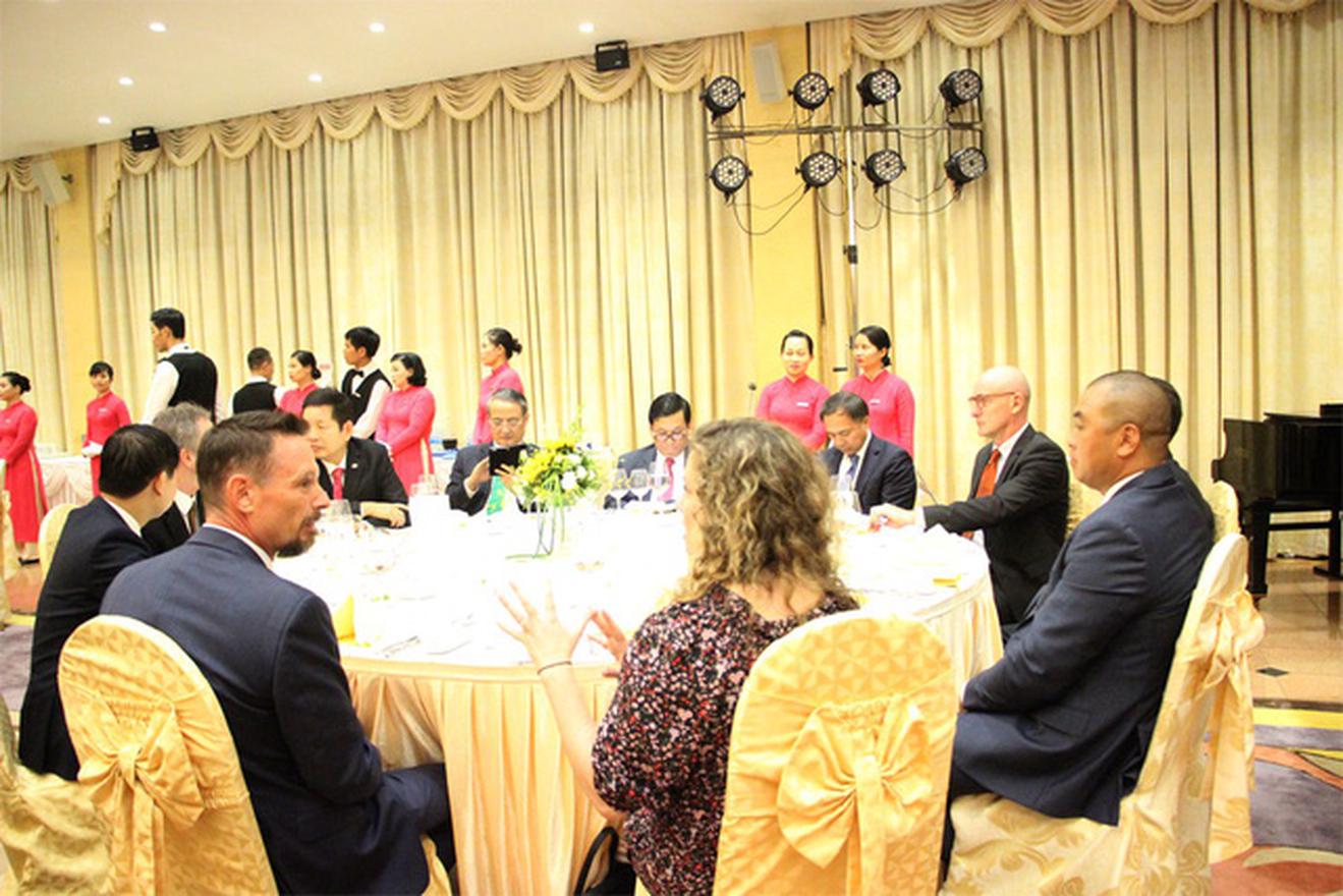 Tiệc chiêu đãi Tổng thống Mỹ Donald Trump được tổ chức trang trọng tại Trung tâm Hội nghị Quốc tế (Hà Nội)...