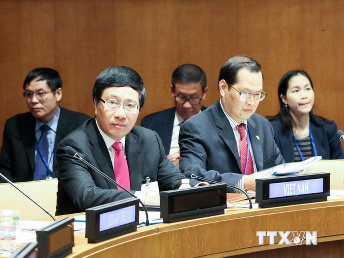 Phó Thủ tướng, Bộ trưởng Ngoại giao Phạm Bình Minh (bên trái) tại Hội nghị ASEAN-Liên hiệp quốc. Ảnh: Lê Dương/TTXVN