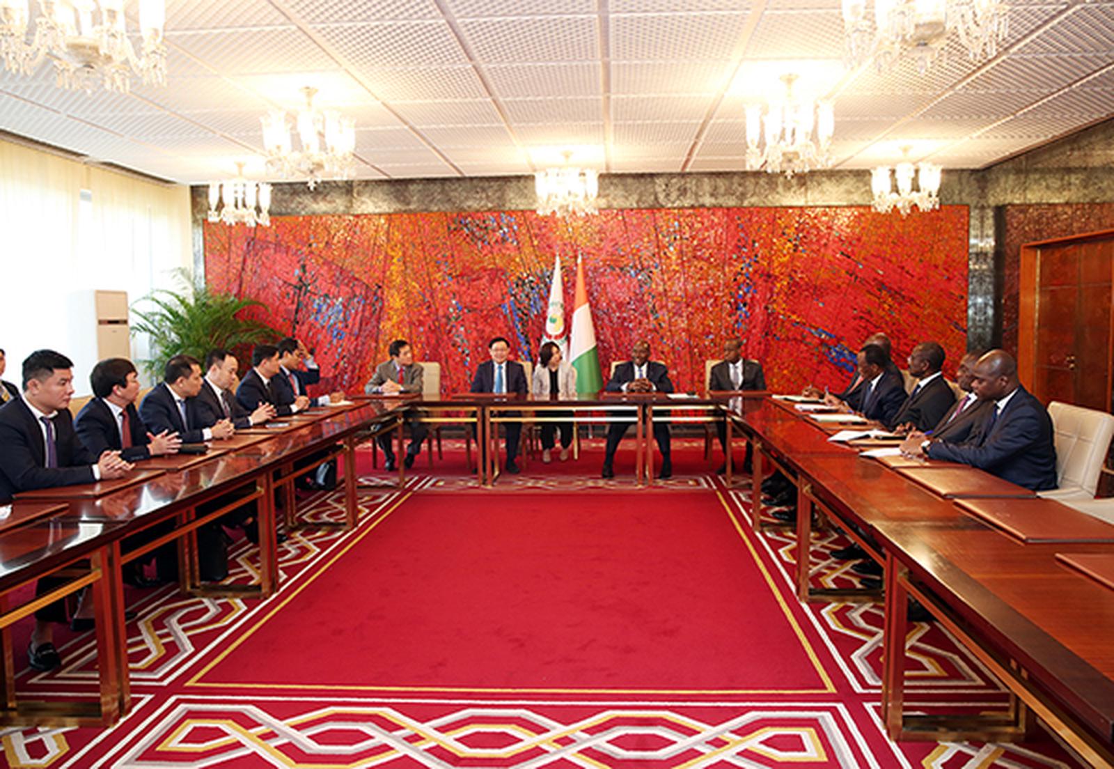 Với nền tảng quan hệ chính trị tốt đẹp, tiềm năng hợp tác giữa hai nước là rất lớn, nhất là trong lĩnh vực thương mại, Phó Thủ tướng khẳng định Việt Nam có nhu cầu và mong muốn sẽ tiếp tục nhập khẩu nhiều hơn các sản phẩm có thế mạnh của Bờ Biển Ngà như điều thô và bông.