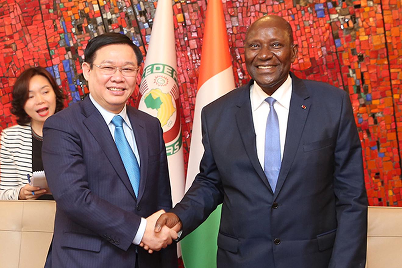 Chiều 31/10 (giờ đêm Hà Nội), trong khuôn khổ chuyến thăm châu Phi, Phó Thủ tướng Chính phủ Vương Đình Huệ và đoàn đại biểu cấp cao Chính phủ Việt Nam đã có buổi làm việc với Phó Tổng thống nước Cộng hoà Bờ Biển Ngà Daniel Kablan Duncan, Bộ trưởng Bộ Hội nhập châu Phi, Bộ trưởng Bộ Nông nghiệp châu Phi tại Bờ Biển Ngà.