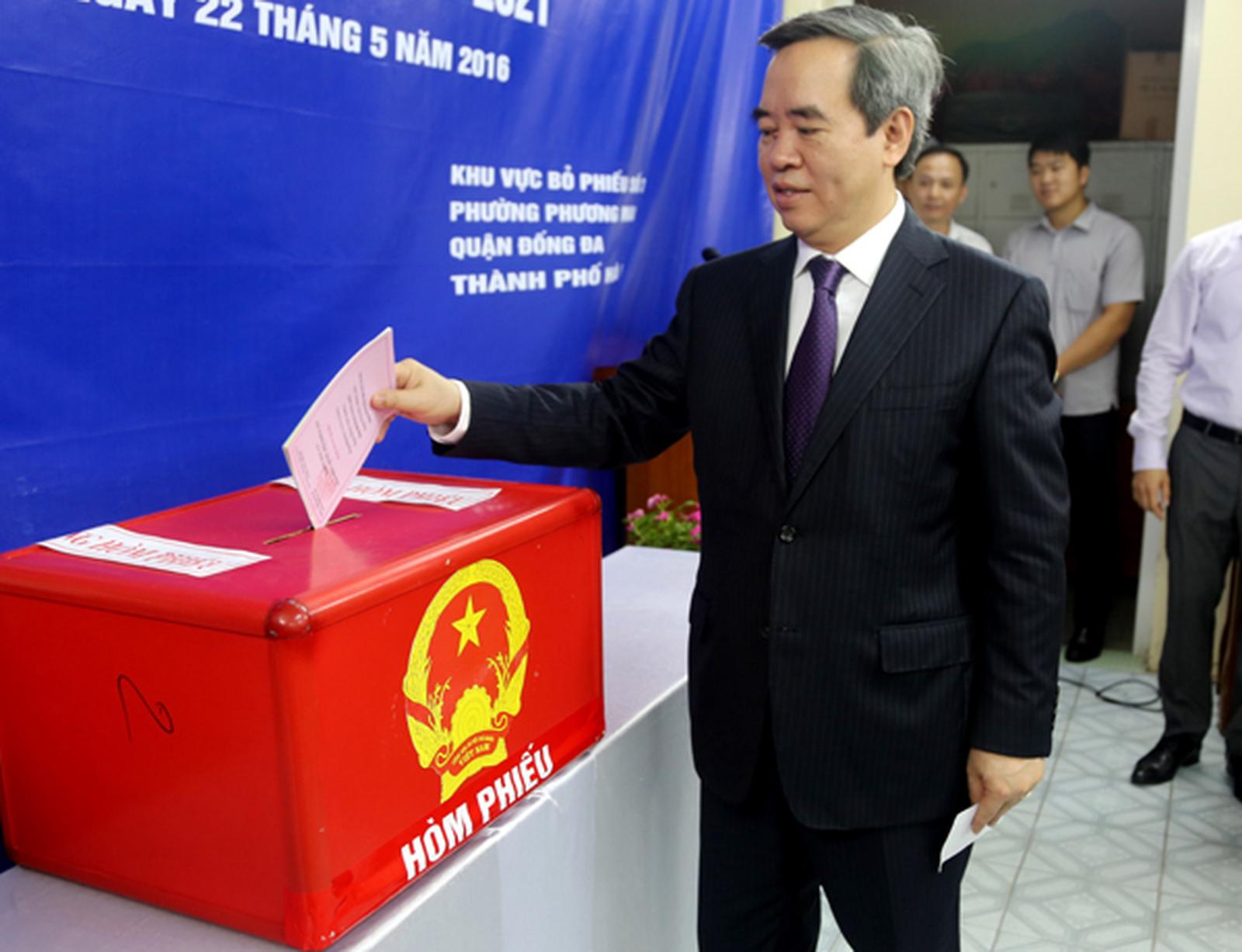Tại khu vực bỏ phiếu số 3, phường Phương Mai, quận Đống Đa, Hà Nội , sau khi bỏ lá phiếu của mình, Trưởng ban Kinh tế Trung ương Nguyễn Văn Bình cũng bày tỏ niềm vui mừng, phấn khởi, tự hào khi thực hiện nghĩa vụ công dân của mình.