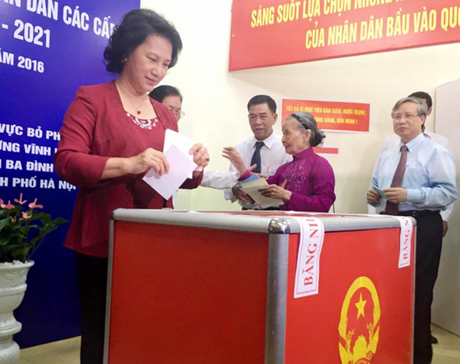 Chủ tịch Quốc hội Nguyễn Thị Kim Ngân vui mừng khi đi bỏ phiếu