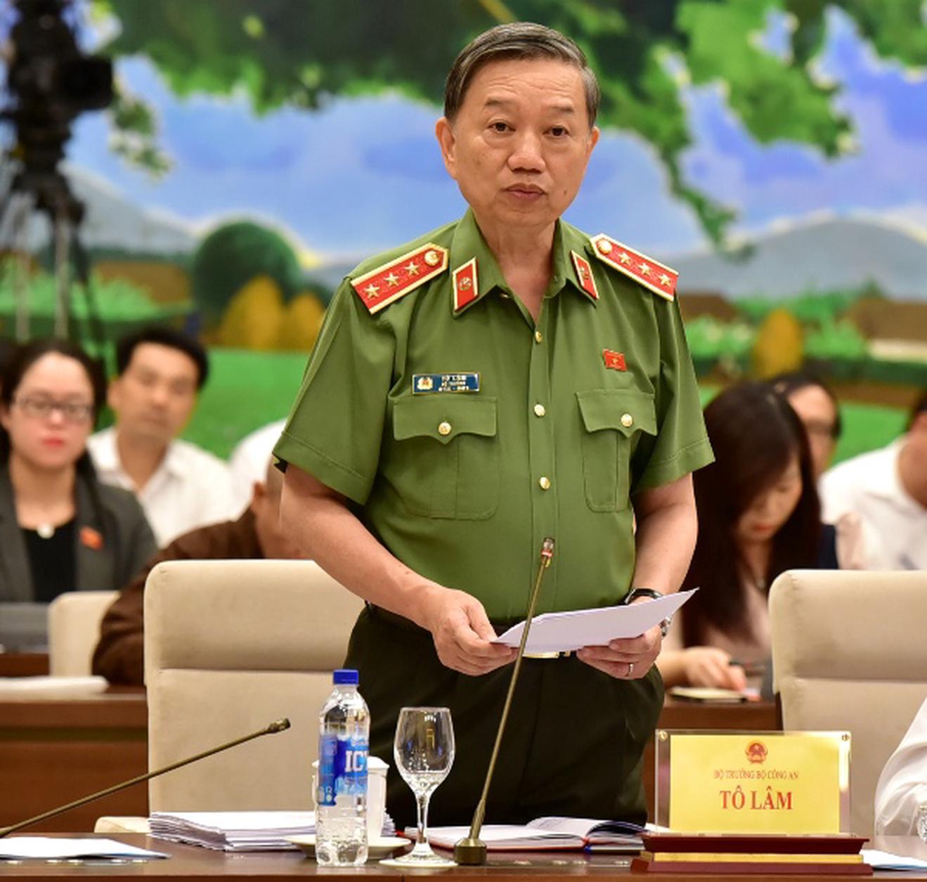 Thượng tướng, Bộ trưởng Công an Tô Lâm trả lời chất vấn. Ảnh: HG