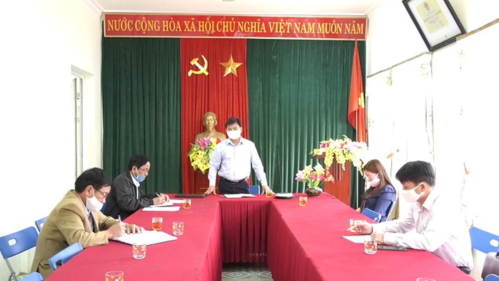 Ông Hà Văn Ca (áo trắng, đứng giữa) chỉ đạo các địa phương trên địa bàn huyện Lang Chánh thực hiện tốt công tác phòng chống dịch bệnh đi đôi với tuyên truyền, vận động đồng bào phát triển kinh tế trên địa bàn. Ảnh: VT
