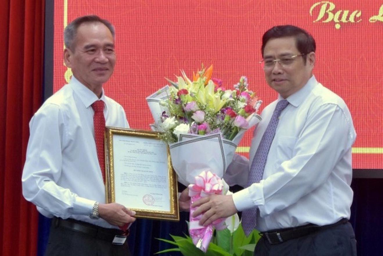 Ông Lữ Văn Hùng (trái) nhận quyết định điều động giữ chức Bí thư Tỉnh ủy Bạc Liêu nhiệm kỳ 2015-2020. Ảnh: TL