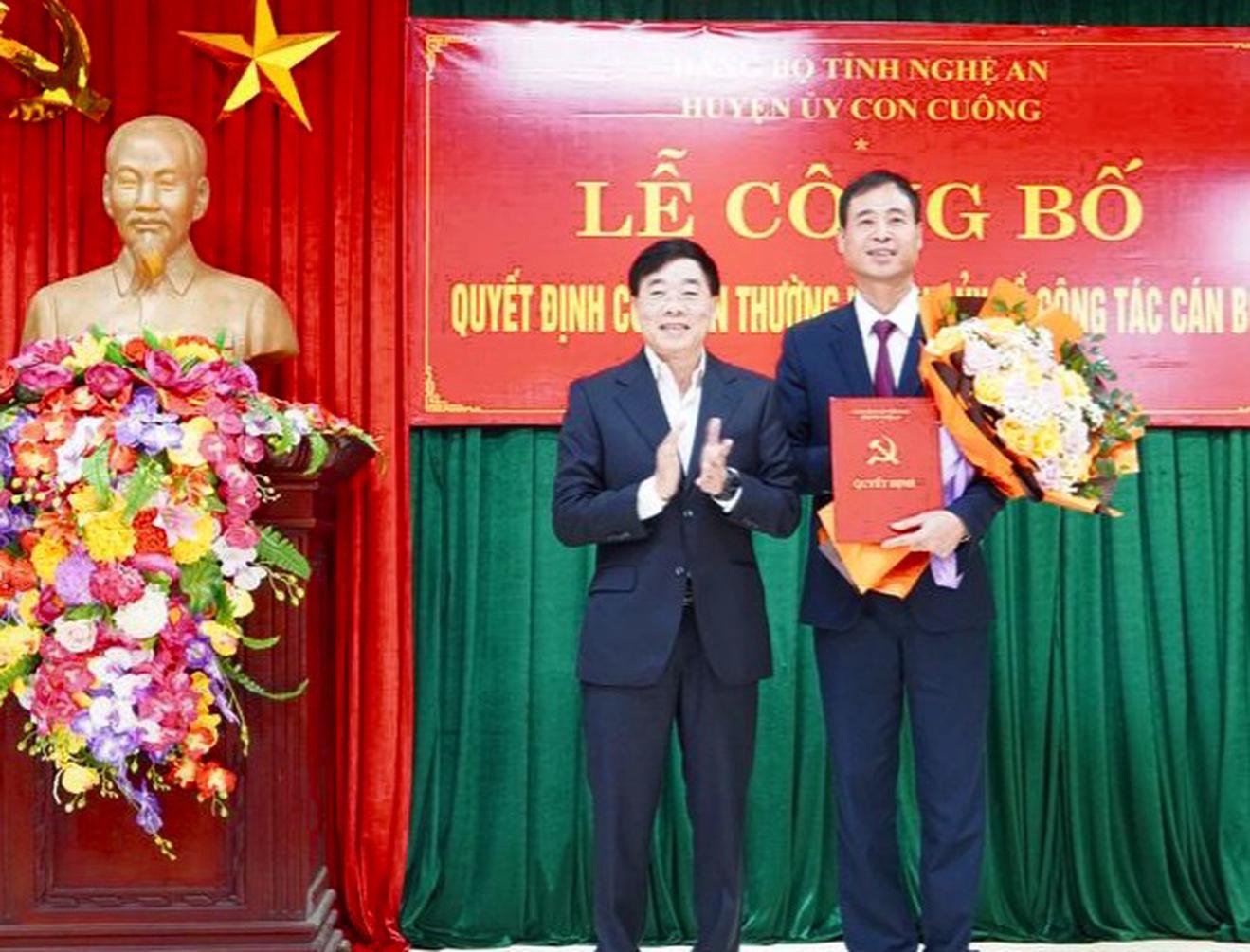 Tại lễ công bố quyết định, đại diện lãnh đạo Ban Tổ chức Tỉnh ủy đã công bố Quyết định số 2268-QĐ/TU, ngày 4/1/2024 của Ban Thường vụ Tỉnh ủy Nghệ An về việc chuẩn y kết quả bầu chức danh đối với ông Lương Đình Việt, Phó Chủ tịch UBND huyện Con Cuông giữ chức Phó Bí thư Thường trực Huyện ủy Con Cuông, nhiệm kỳ 2020 - 2025.