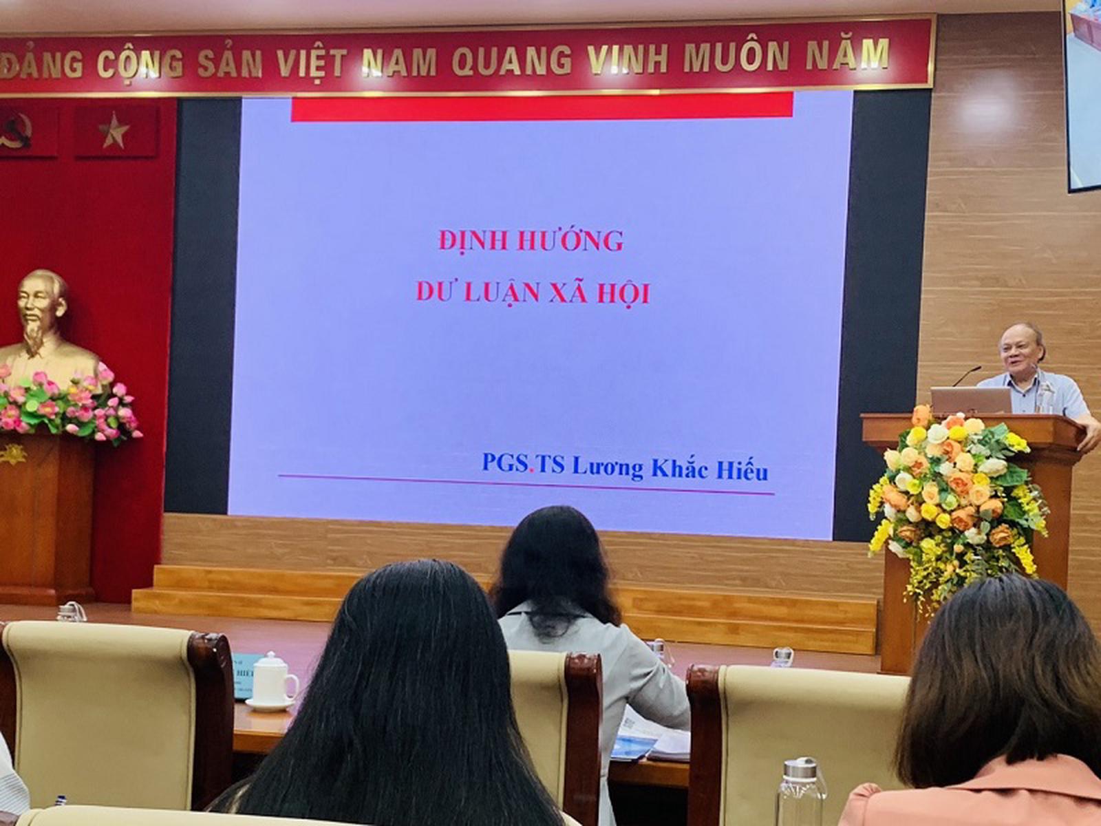 Chuyên đề 2: Một số nội dung, phương pháp và giải pháp nhằm nâng cao hiệu quả công tác định hướng dư luận xã hội trong giai đoạn hiện nay do PGS.TS Lương Khắc Hiếu, nguyên quyền Giám đốc Học viện Báo chí và Tuyên truyền trình bày.