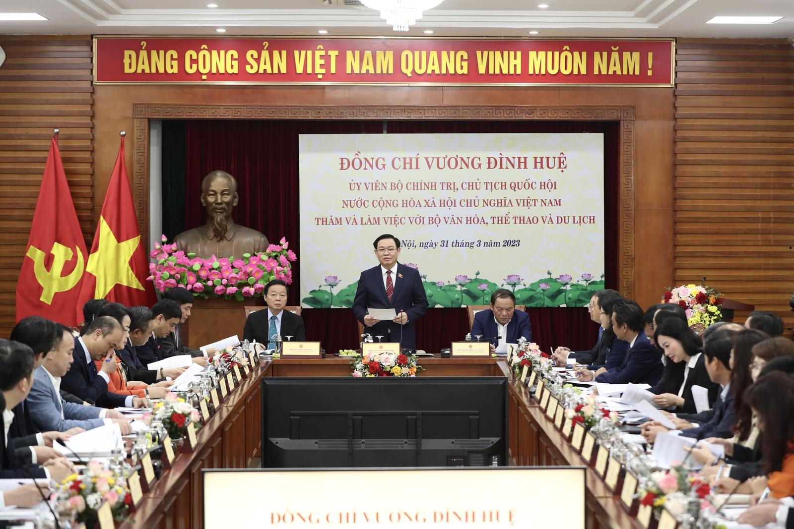 Tại cuộc làm việc, Chủ tịch Quốc hội Vương Đình Huệ đánh giá cao ngành VHTTDL đã vượt qua khó khăn, thách thức và đạt được nhiều thành tựu rất quan trọng trong bối cảnh tình hình thế giới có nhiều khó khăn, thách thức và biến động, nhất là tác động của đại dịch Covid - 19.