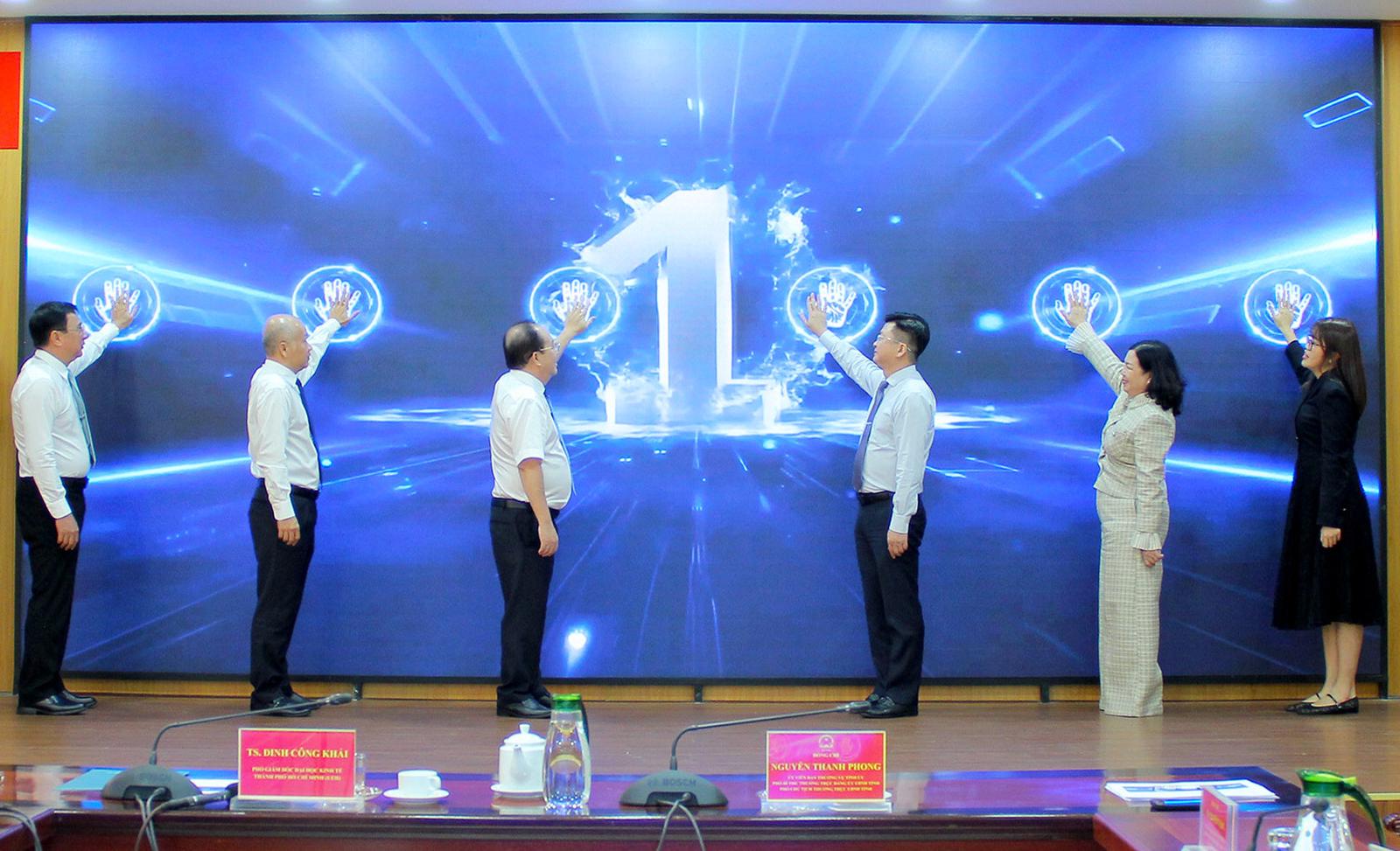 Nghi thức ra mắt nền tảng trực tuyến hỗ trợ ươm tạo khởi nghiệp sáng tạo tỉnh An Giang. Ảnh: Cổng TTĐT An Giang
