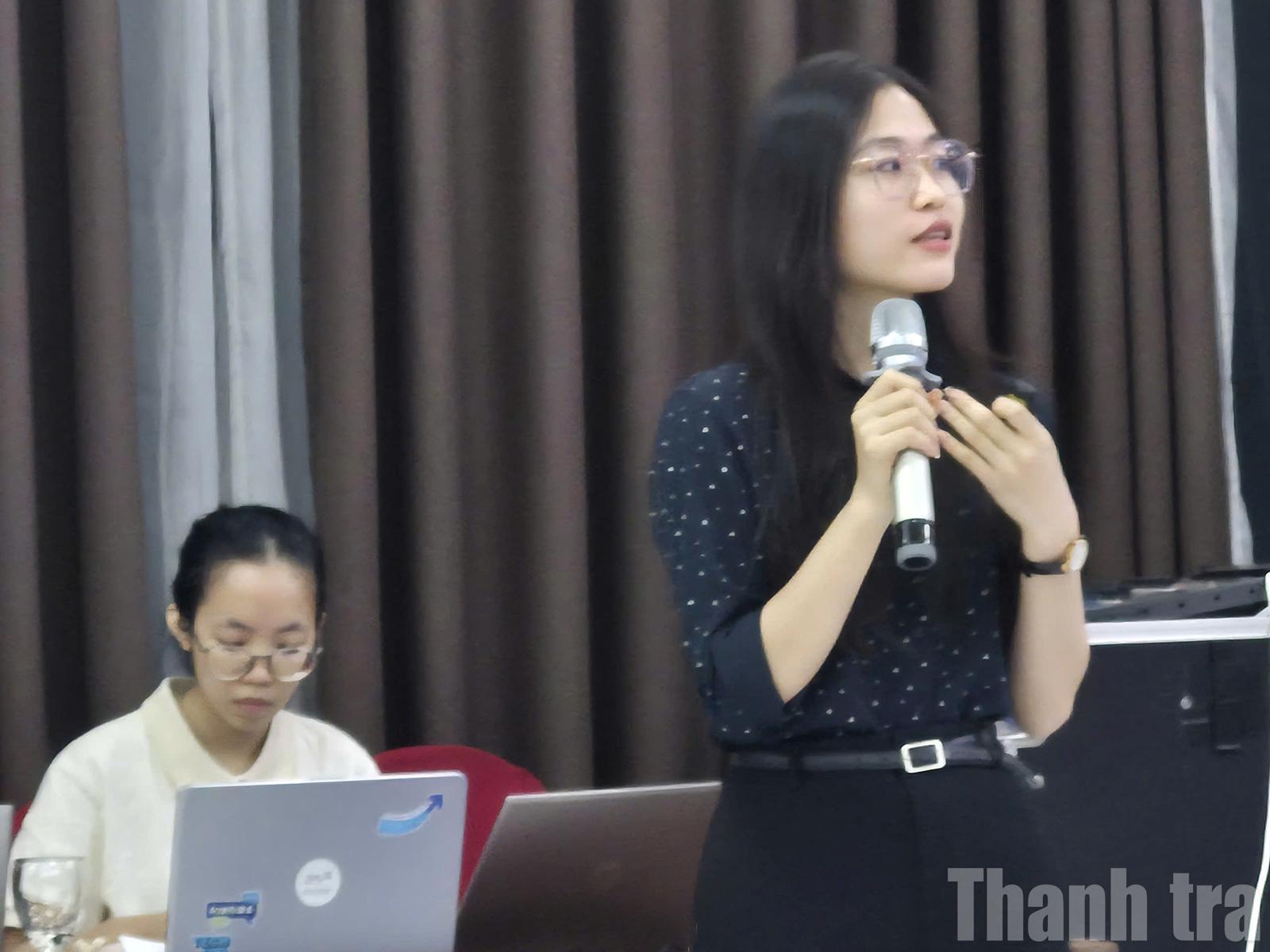 Bà Nguyễn Lan Phương, đại diện ban soạn thảo trình bày một số quy tắc sử dụng AI. Ảnh: TM