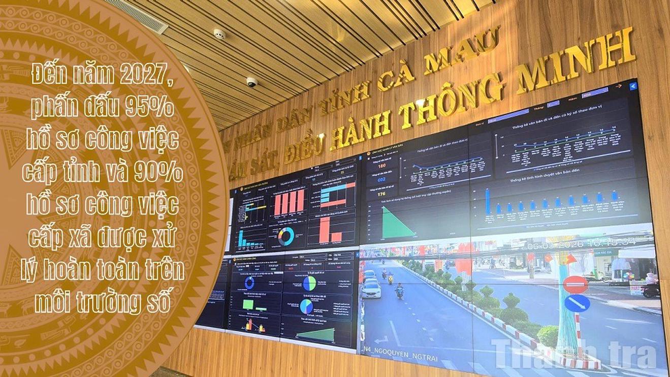 (Thanh tra) - Tỉnh Cà Mau đặt mục tiêu đến năm 2027, hình thành cơ sở dữ liệu tổng hợp phục vụ điều hành của Tỉnh ủy và UBND tỉnh theo nguyên tắc “đúng, đủ, sạch, sống, thống nhất, dùng chung”. Phấn đấu 95% hồ sơ công việc cấp tỉnh và 90% hồ sơ công việc cấp xã được xử lý hoàn toàn trên môi trường số; 100% văn bản điện tử được ký số và gửi nhận liên thông.