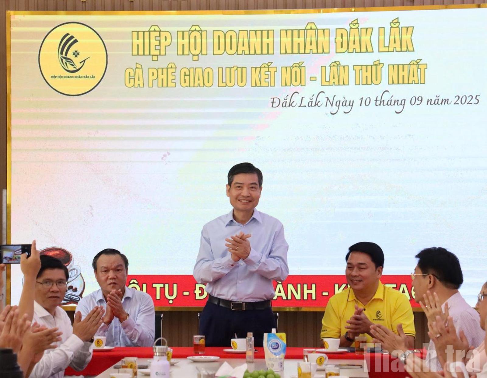 Phó Bí thư Tỉnh ủy, Chủ tịch UBND tỉnh Đắk Lắk Tạ Anh Tuấn tham gia Chương trình cà phê giao lưu kết nối cùng Hiệp hội Doanh nhân Đắk Lắk. Ảnh: NG