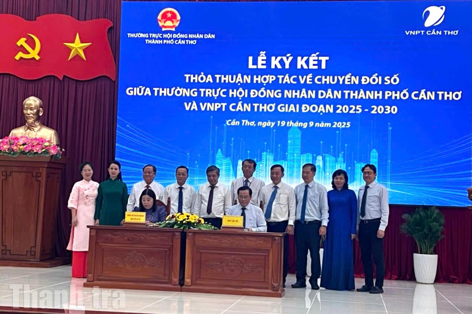 Lễ ký kết Thỏa thuận hợp tác giữa Thường trực HĐND TP Cần Thơ và Viễn thông Cần Thơ. Ảnh: Lê Tuấn