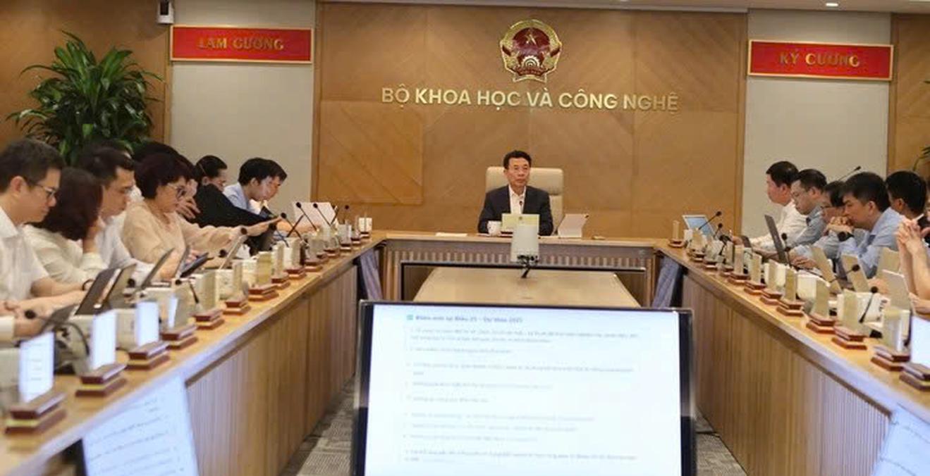 Bộ trưởng Nguyễn Mạnh Hùng chủ trì hội thảo Hội thảo lấy ý kiến đóng góp cho dự thảo Luật Khoa học, Công nghệ và Đổi mới sáng tạo hồi tháng 4/2025. Ảnh: H.Đ