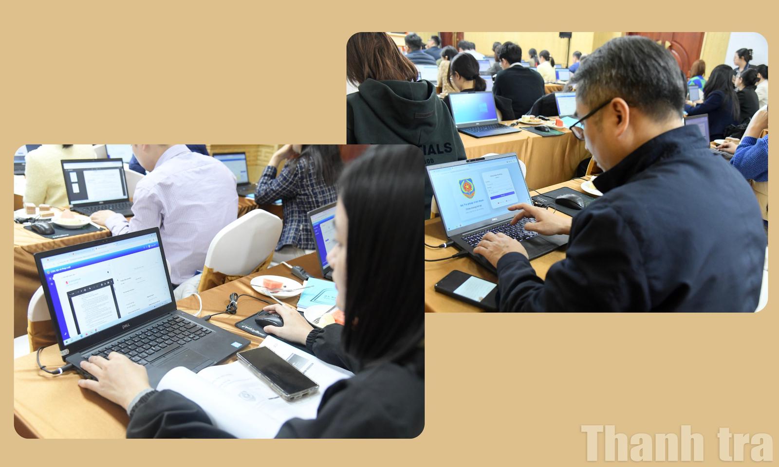 Đại biểu tham gia đào tạo tiến hành sử dụng thử nghiệm hệ thống. Ảnh: Minh Nguyệt