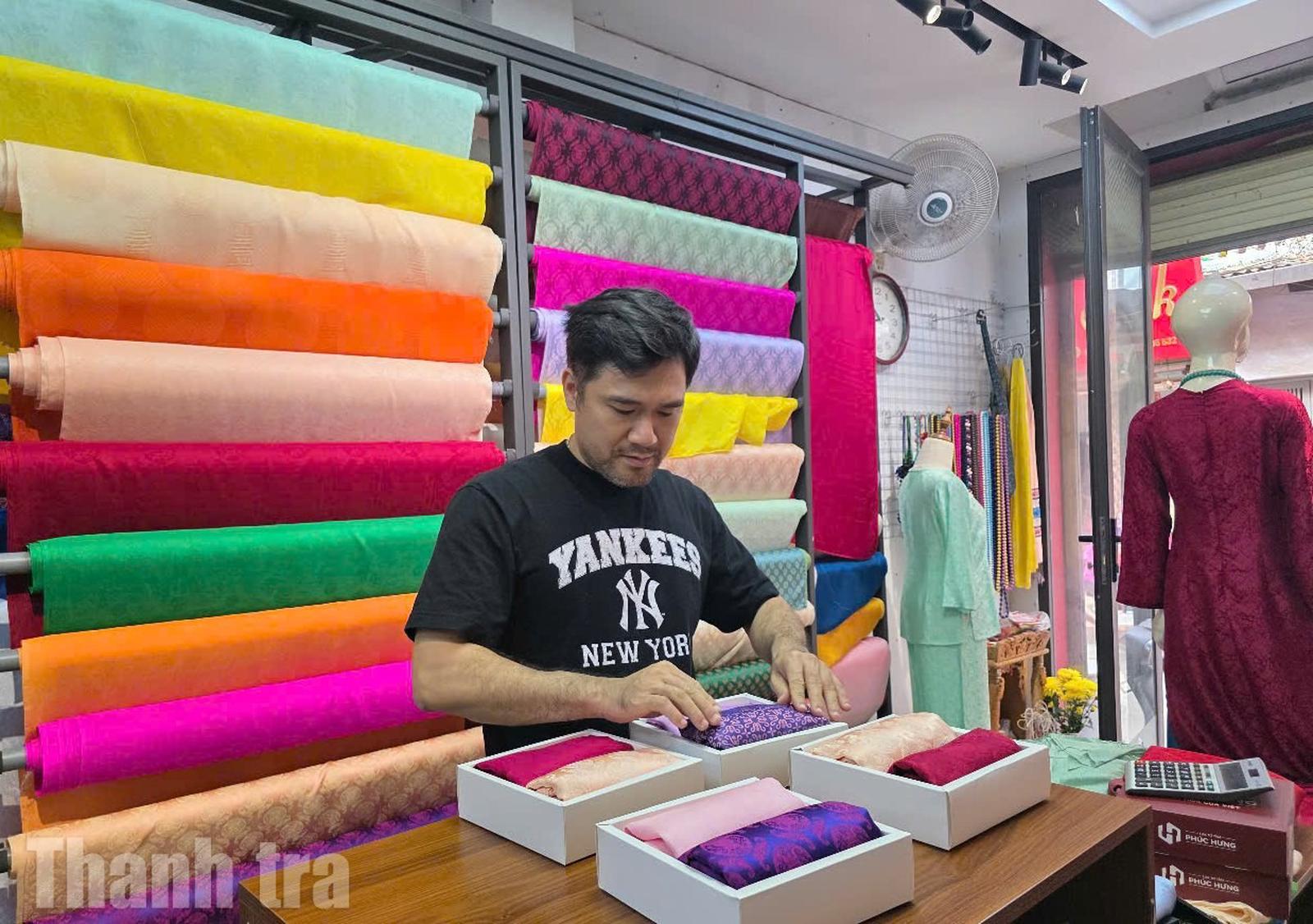 Anh Hiếu, chủ một cơ sở kinh doanh lụa có tiếng tại trung tâm làng, vừa thoăn thoắt đóng gói những hộp quà Tết vừa chia sẻ: "Trước đây, cứ Tết đến là chúng tôi chỉ trông chờ vào khách du lịch hoặc các mối buôn quen. Nhưng từ khi thực hiện chuyển đổi số, mọi thứ đã thay đổi. Đơn hàng bây giờ “bay” về từ khắp nơi: Thành phố Hồ Chí Minh, Đà Nẵng, thậm chí cả khách Việt kiều đặt áo dài ăn Tết".