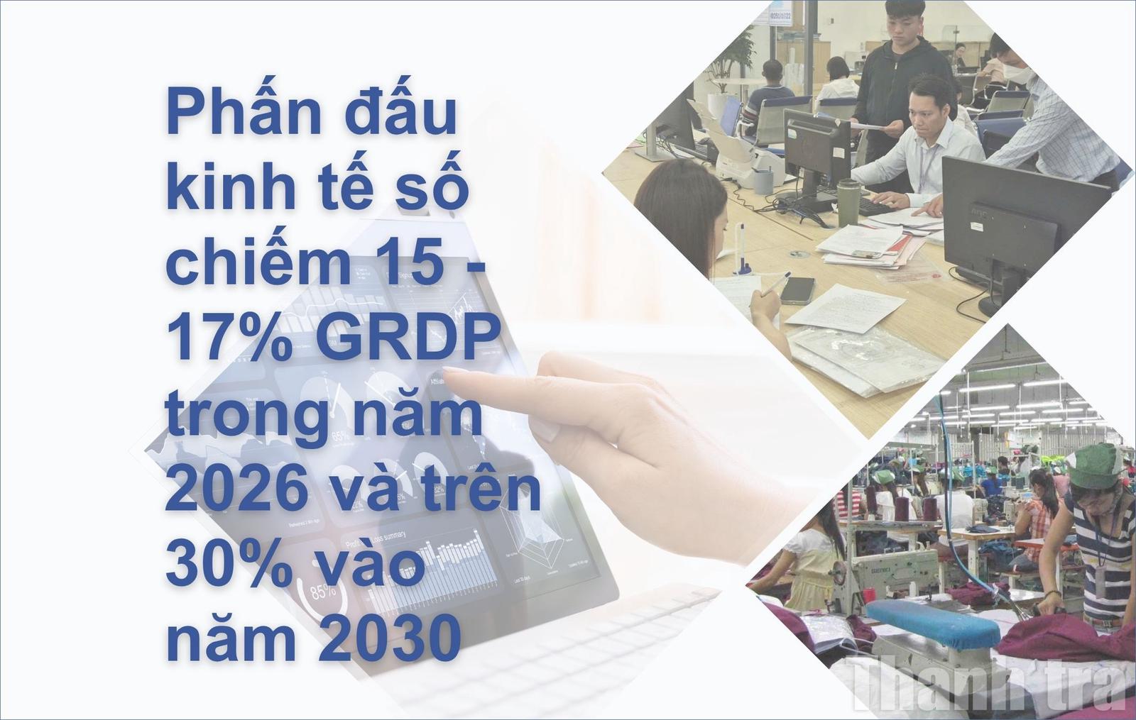 Cùng với đó, tỉnh phấn đấu 95% hồ sơ thủ tục hành chính được xử lý trực tuyến; ít nhất 80% người dân và doanh nghiệp sử dụng dịch vụ công trực tuyến; tỷ lệ thanh toán không dùng tiền mặt đạt từ 80% trở lên. Kinh tế số được kỳ vọng chiếm 15 - 17% GRDP trong năm 2026 và trên 30% vào năm 2030.