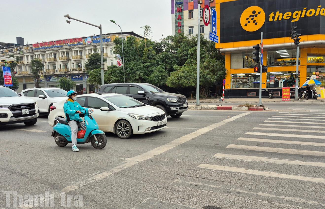 Tại một nút giao thông trọng điểm, các phương tiện dừng chờ đèn đỏ cách xa vạch kẻ đường. Ảnh: NT