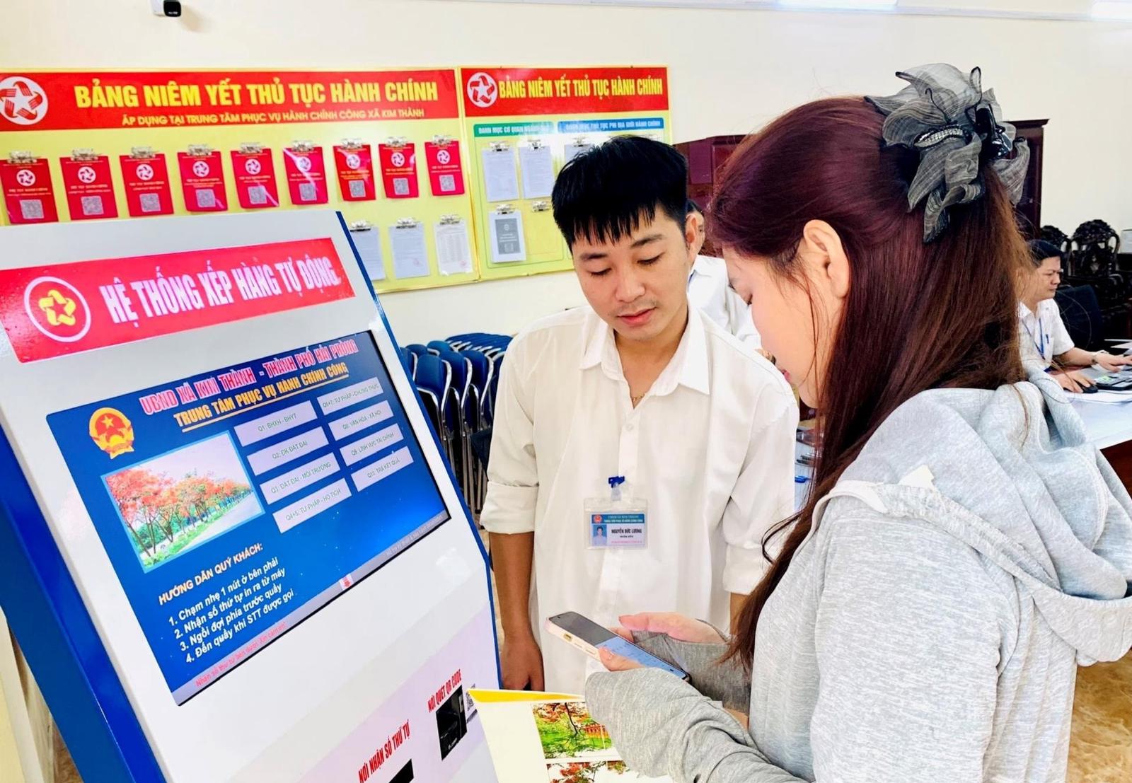 Người dân xã Kim Thành, thành phố Hải Phòng được hỗ trợ thực hiện dịch vụ công trực tuyến. Ảnh: Mai Lê