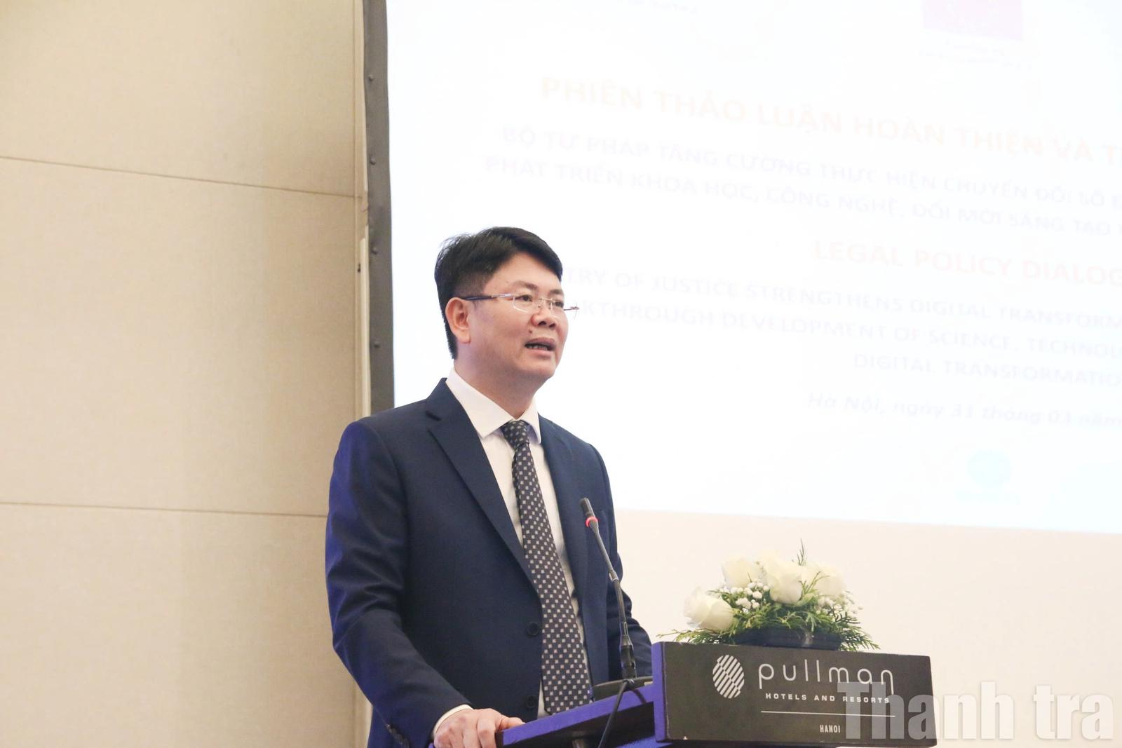 Phát biểu khai mạc phiên thảo luận, ông Nguyễn Thanh Tịnh, Thứ trưởng Bộ Tư pháp cho biết, Việt Nam đang quyết liệt triển khai Nghị quyết 57 của Bộ Chính trị về đột phá phát triển khoa học, công nghệ, đổi mới sáng tạo và chuyển đổi số quốc gia. Trong đó, thành lập Ban Chỉ đạo Trung ương do Tổng Bí thư Tô Lâm làm Trưởng Ban. Ban Chỉ đạo họp hàng quý, Chính phủ họp hàng tháng để đánh giá kết quả triển khai thực hiện.