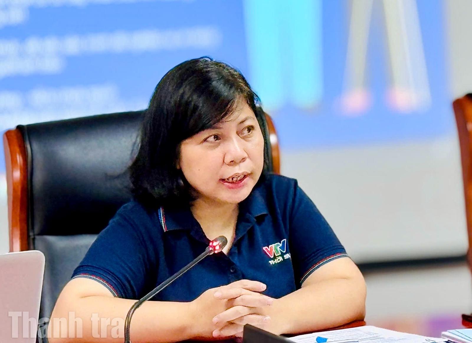 Nhà báo Nguyễn Thị Kim Hải, Phó Trưởng phòng Văn hóa, Ban Thời sự, Đài Truyền hình Việt Nam trao đổi tại khóa học. Ảnh: V.L