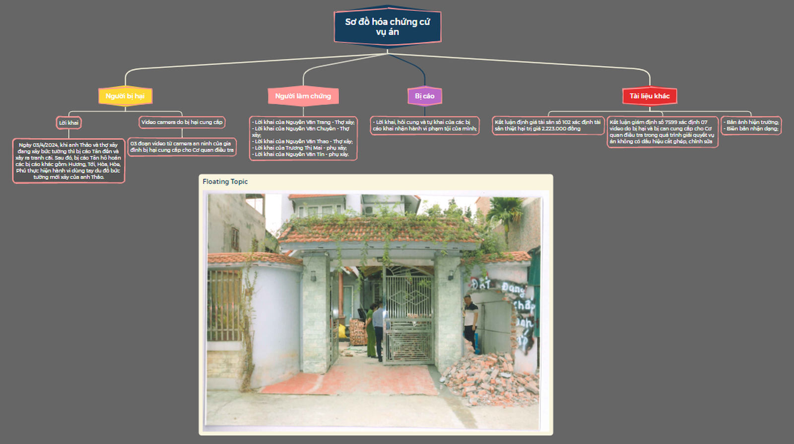 Kiểm sát viên sử dụng phần mềm Xmind để sơ đồ hóa chứng cứ tại phiên tòa. Ảnh VKS TP Hà Nội