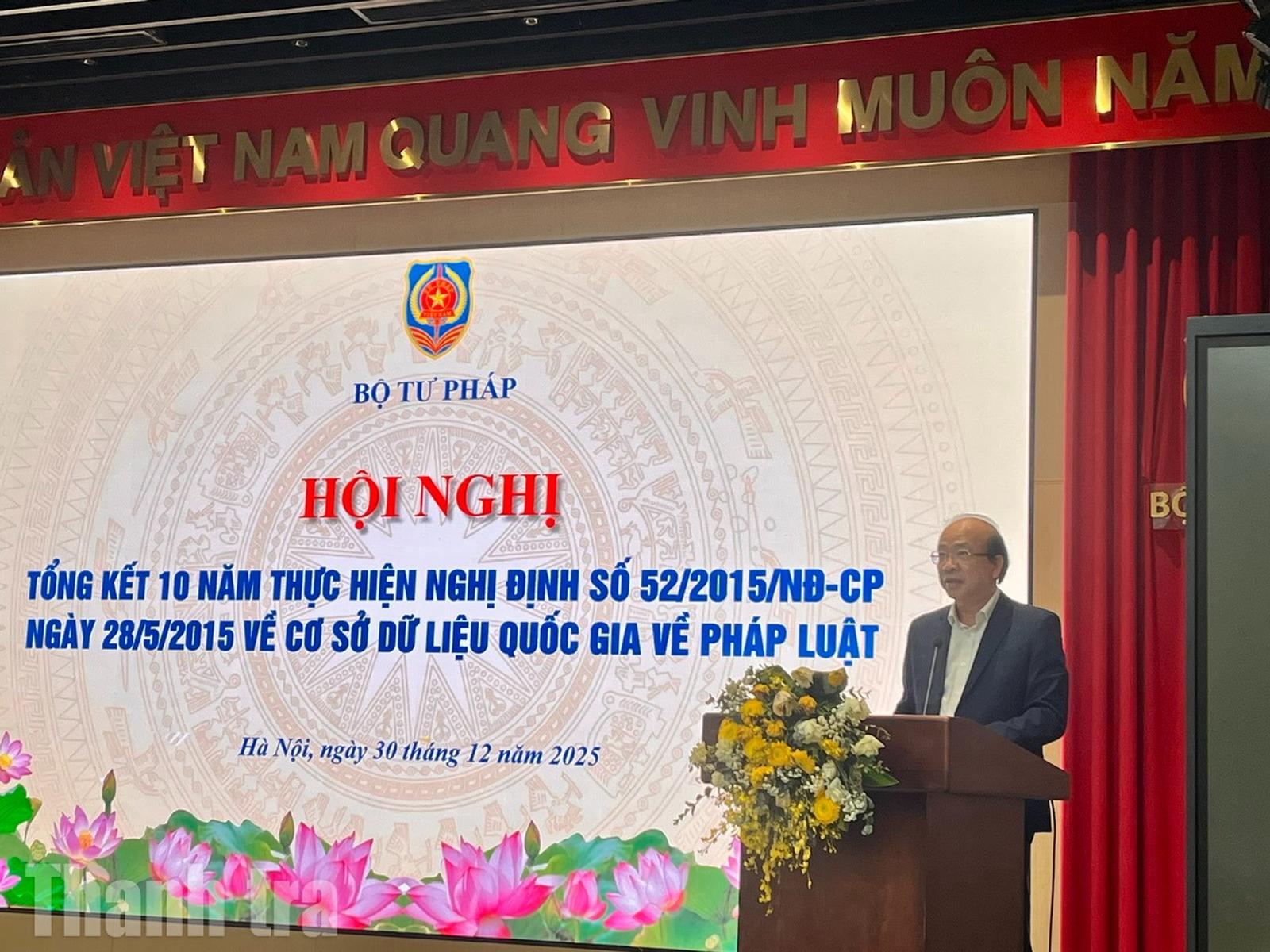(Thanh tra) - Chiều 30/12, Bộ Tư pháp tổ chức Hội nghị tổng kết 10 năm thực hiện Nghị định số 52/2015/NĐ-CP ngày 28/5/2015 về cơ sở dữ liệu quốc gia về pháp luật dưới sự chủ trì của Thứ trưởng Phan Chí Hiếu.