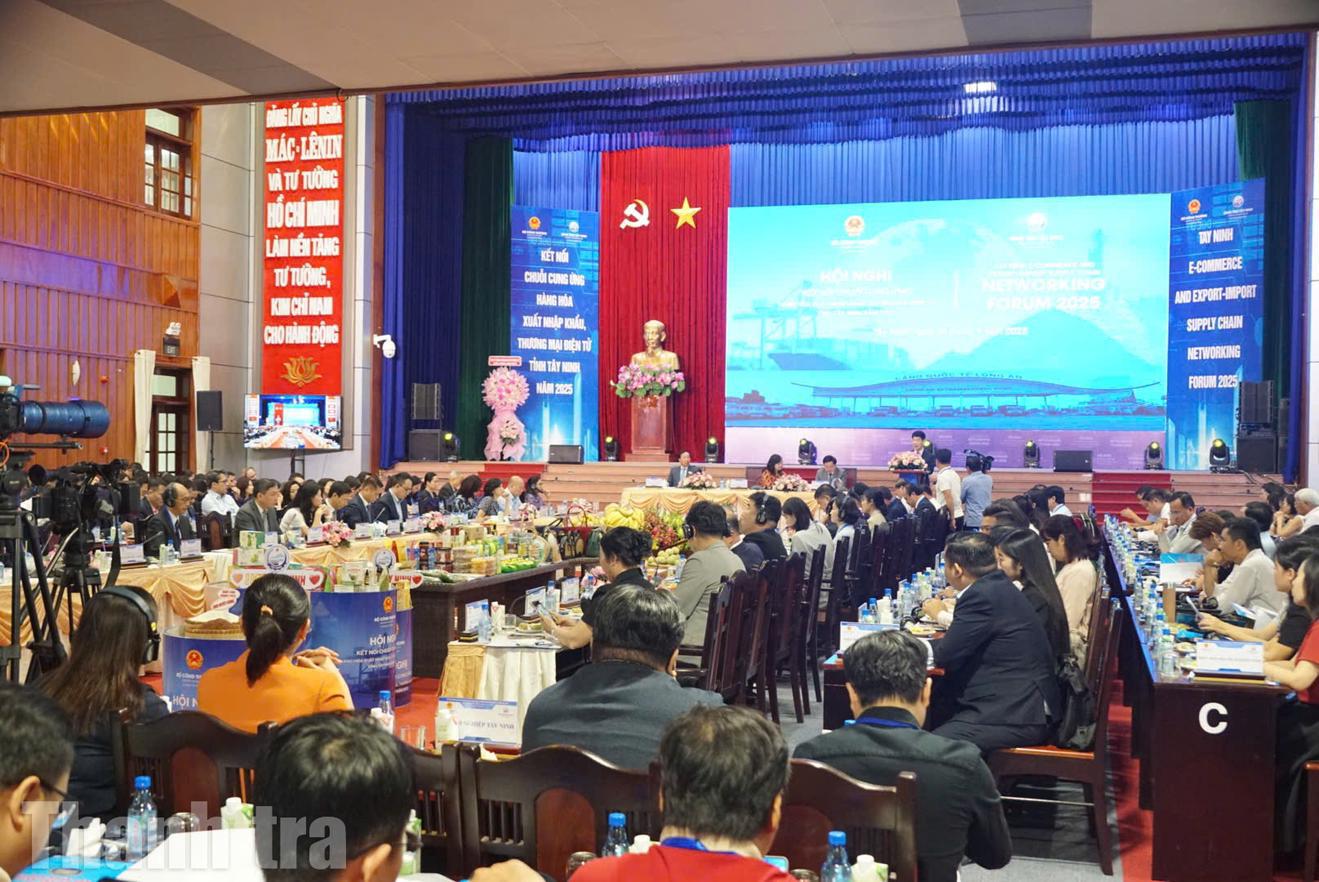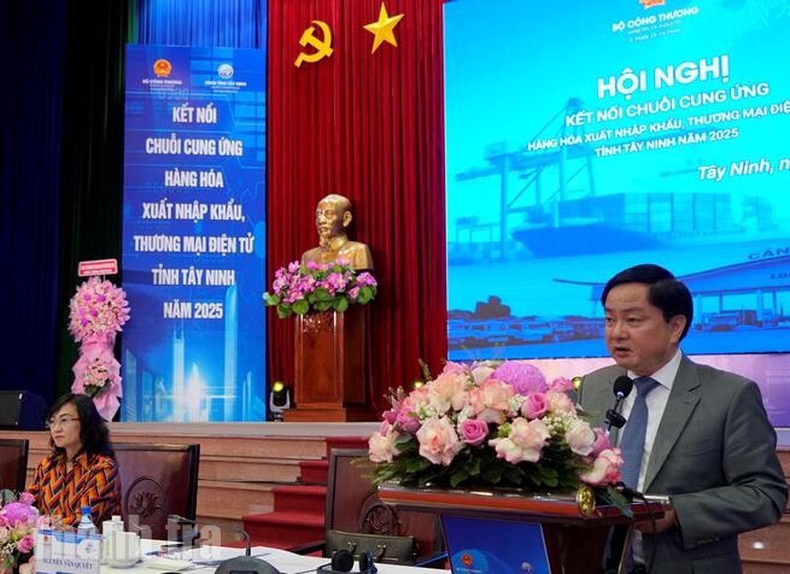 UBND tỉnh Tây Ninh phối hợp với Bộ Công Thương tổ chức hội nghị kết nối chuỗi cung ứng hàng hóa xuất nhập khẩu và thương mại điện tử năm 2025. Ảnh: Thu Huyền