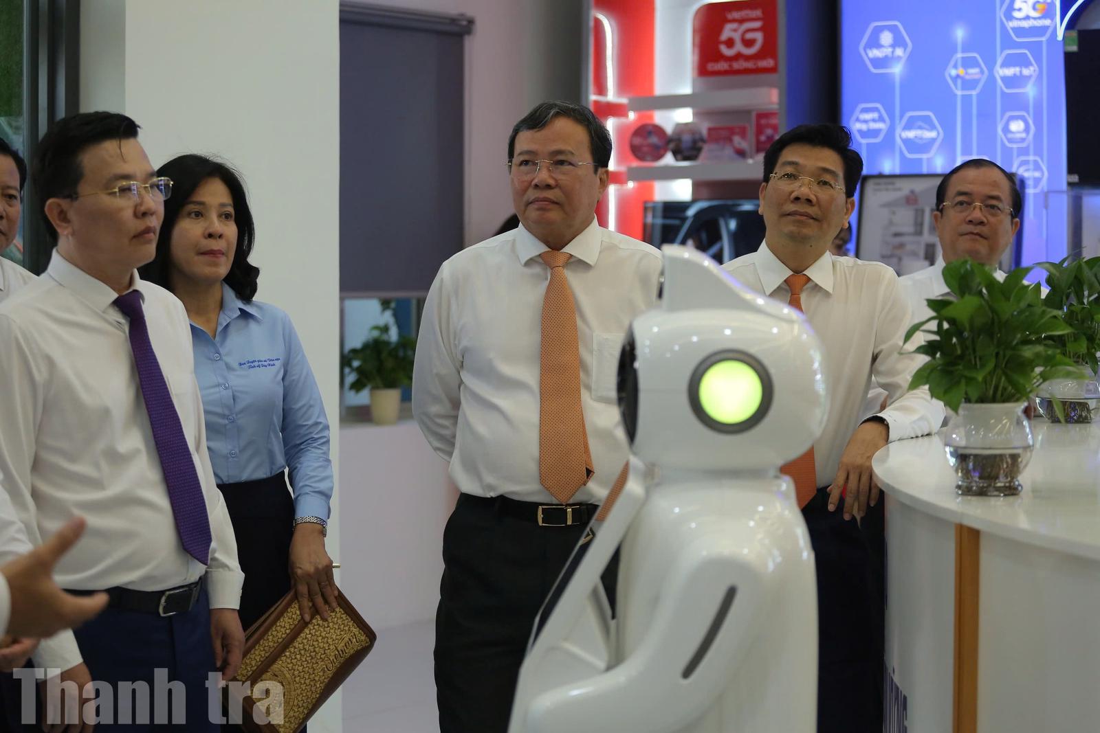 Lãnh đạo tỉnh Tây Ninh tham quan Trung tâm Đổi mới sáng tạo. Ảnh: Thu Huyền