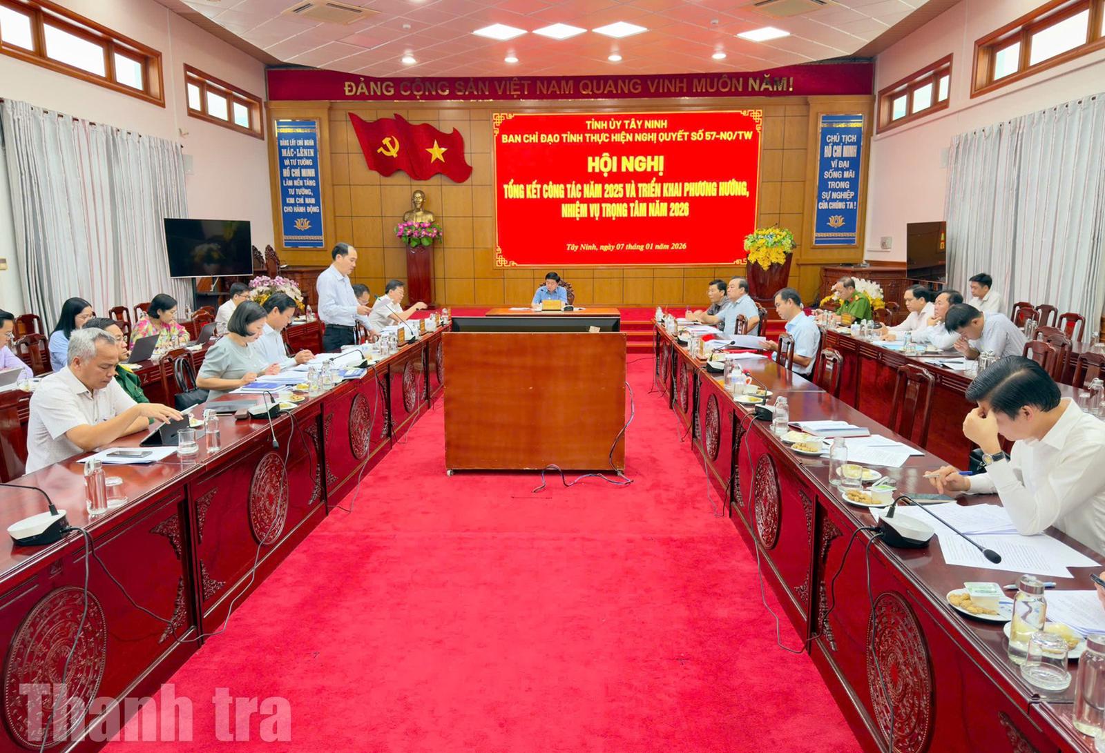 Ban Chỉ đạo tỉnh Tây Ninh thực hiện Nghị quyết 57-NQ/TW tổ chức hội nghị tổng kết công tác năm 2025 và triển khai nhiệm vụ năm 2026. Ảnh: Thu Huyền