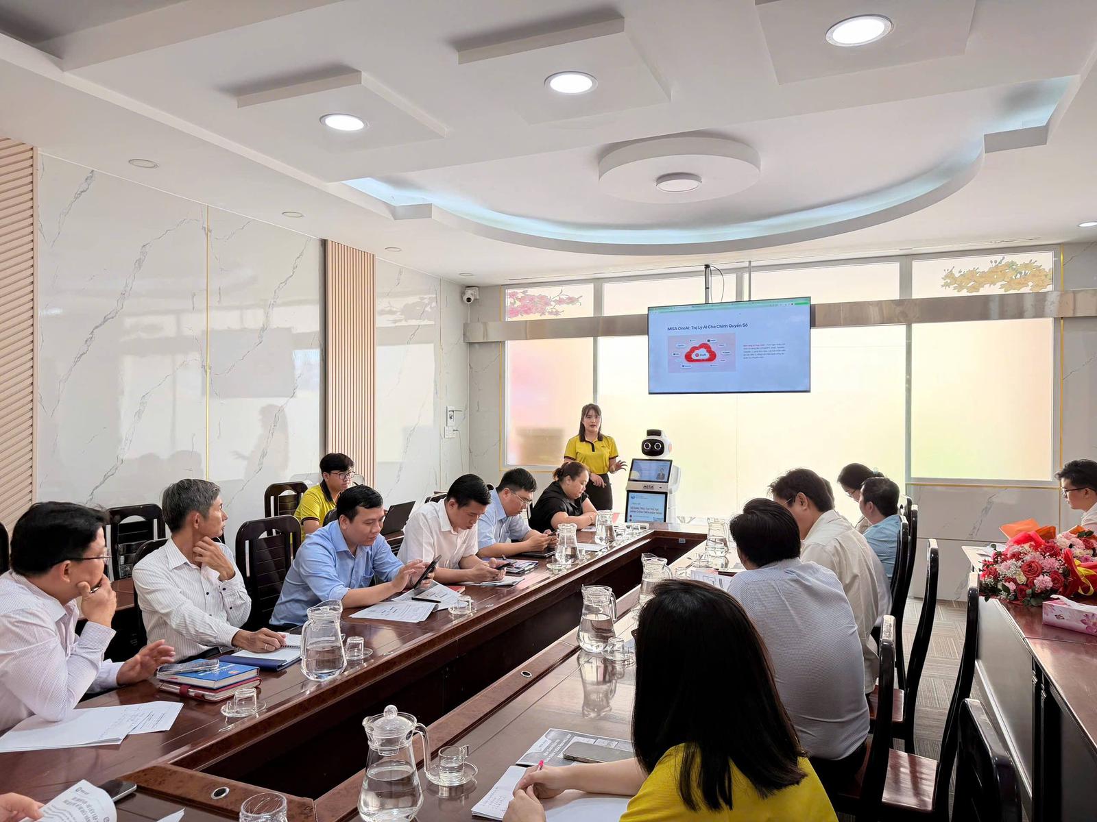 Phường Long An, tỉnh Tây Ninh tổ chức hội nghị về giải pháp ứng dụng trí tuệ nhân tạo (AI) và robot trong lĩnh vực hành chính công. Ảnh: Cổng TTĐT phường Long An