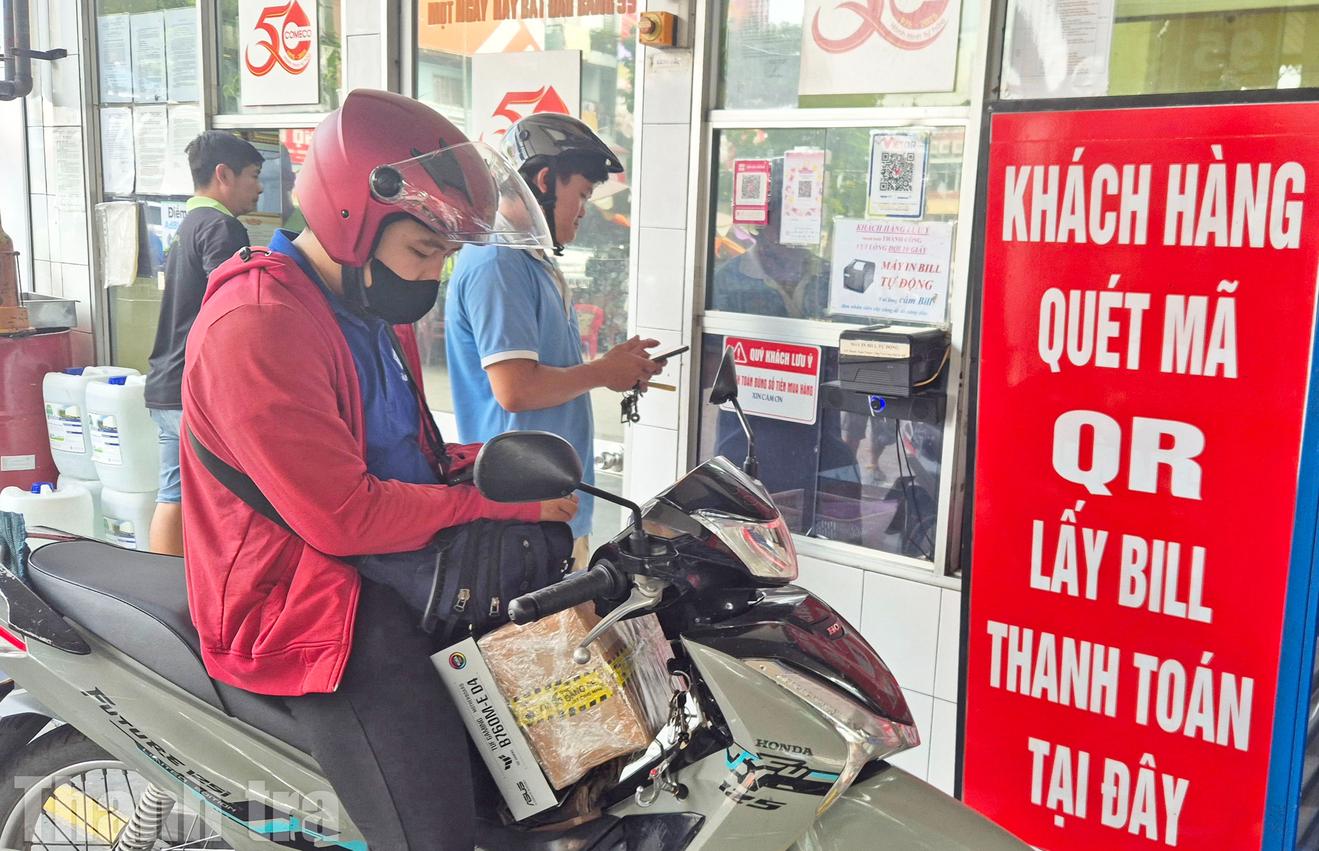 Ghi nhận tại cửa hàng xăng dầu ở góc đường Lý Thái Tổ và Lê Hồng Phong (phường Vườn Lài, TP Hồ Chí Minh), sau khi đổ xăng, khách hàng có nhu cầu thanh toán chuyển khoản sẽ được nhân viên hướng dẫn di chuyển qua khu vực để quét mã QR. Tại đây, khách hàng chỉ cần nhập đúng số tiền, xác nhận giao dịch trên ứng dụng điện thoại và hoàn tất thanh toán trong thời gian rất ngắn.