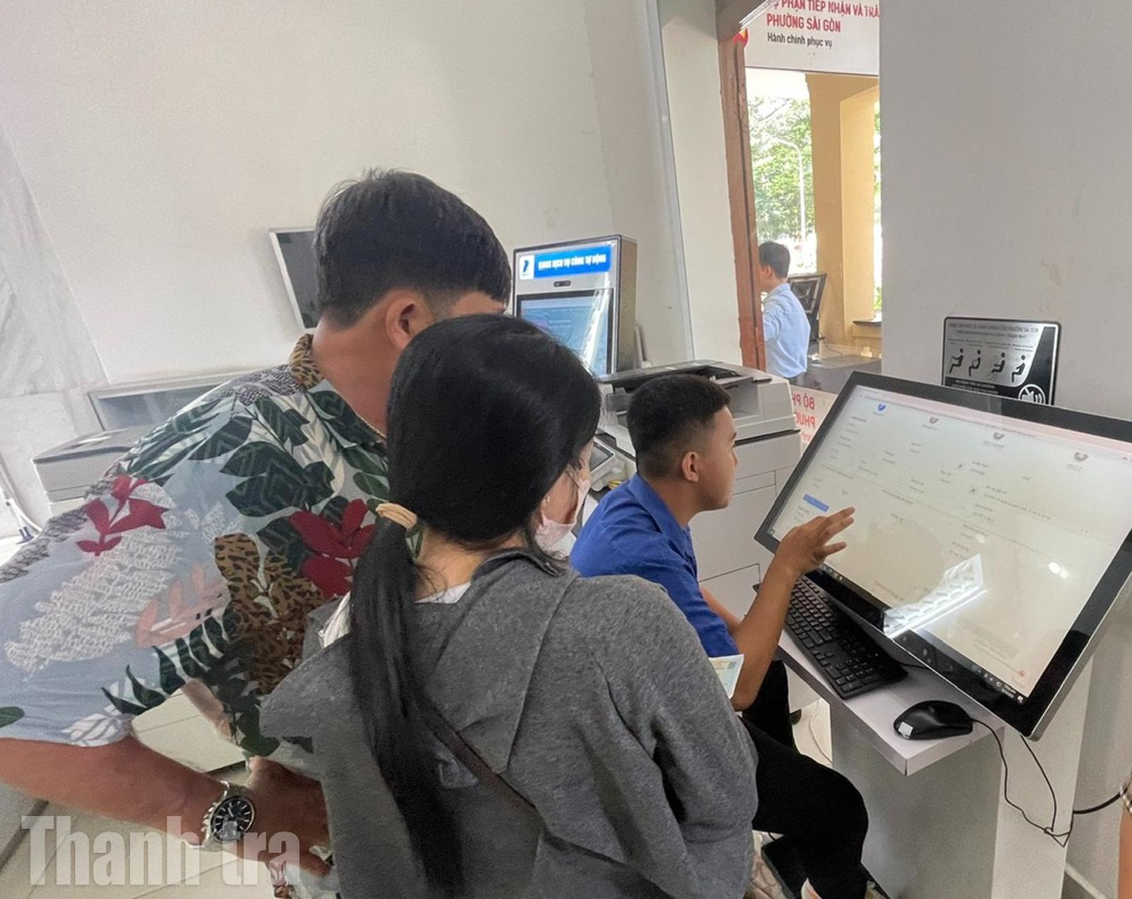 Hỗ trợ người dân ứng dụng công nghệ tại Trung tâm Phục vụ hành chính công phường Sài Gòn, TP Hồ Chí Minh. Ảnh: Thu Huyền