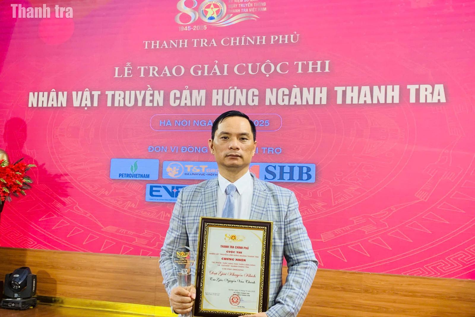 Nhà báo Văn Thanh cho biết, khi nghe mình được xướng tên trong lễ trao giải, tôi vừa vui mừng, vừa xúc động, nhưng hơn hết là cảm thấy biết ơn, biết ơn những con người âm thầm, tận tụy đã cho tôi nguồn cảm hứng để viết nên tuyến bài “Thắp sáng tinh thần liêm chính và ‘giữ hồn’ ngành Thanh tra Thanh Hóa”: Bài 1: Từ những cánh đồng ngập nước đến bản kết luận làm “nóng” nghị trường; Bài 2: Người “giữ lửa” nghề Thanh tra bằng trách nhiệm và bản lĩnh.
