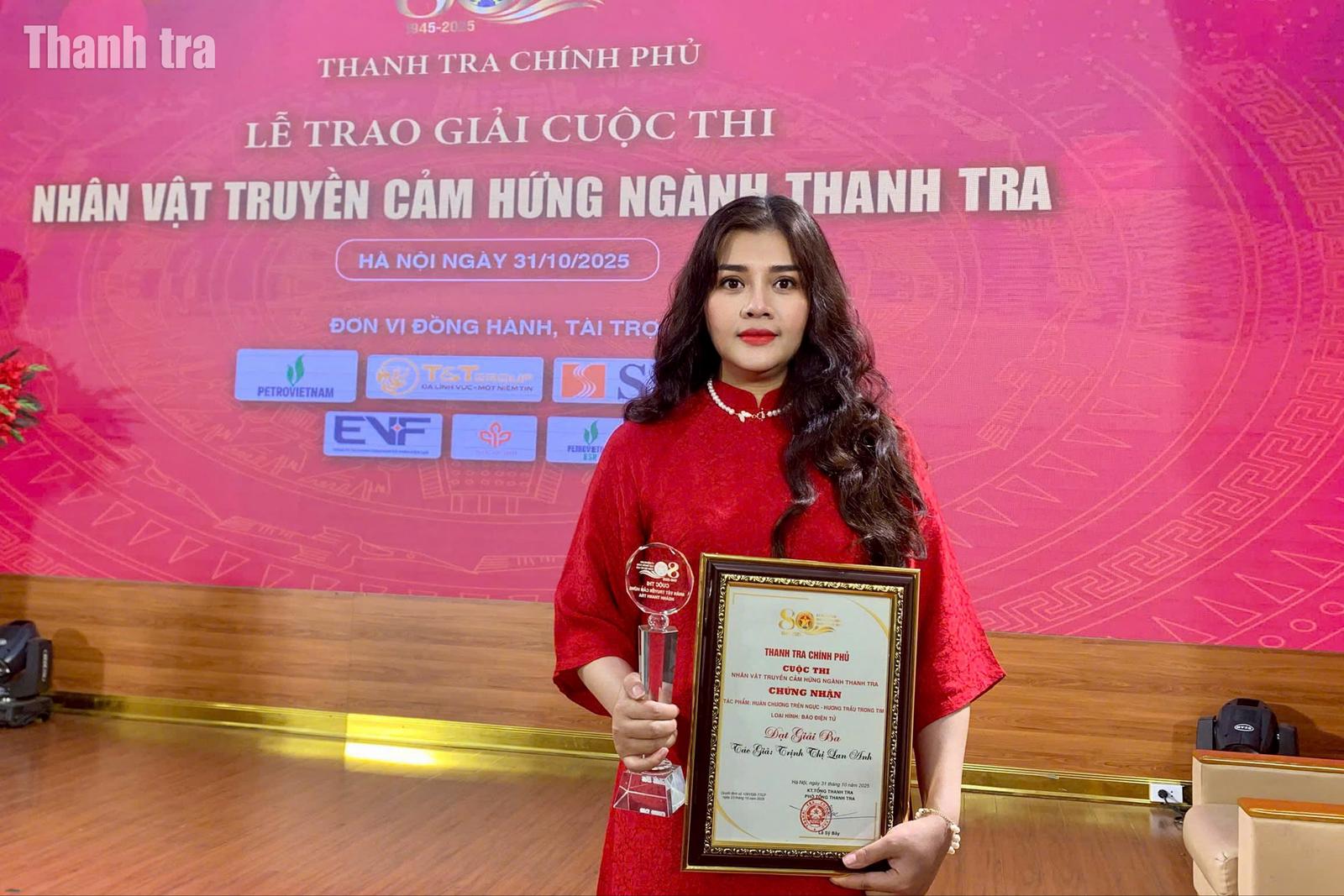 Tại Lễ tôn vinh các tác giả đạt giải, Nhà báo Trịnh Thị Lan Anh đã chia sẻ những cảm xúc về quá trình tham dự Cuộc thi “Nhân vật truyền cảm hứng ngành Thanh tra” cũng như thành quả đã đạt được.