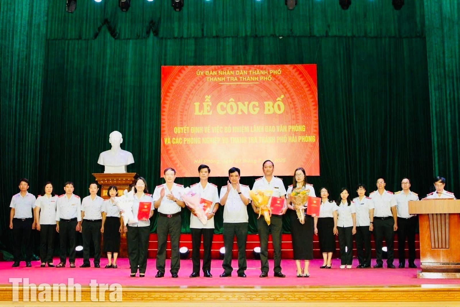 Tập thể lãnh đạo và cán bộ, công chức Phòng Thanh tra giải quyết khiếu nại, tố cáo lĩnh vực Nông nghiệp - Môi trường - Tư pháp (Phòng Nghiệp vụ 9) - Thanh tra thành phố Hải Phòng tại buổi Lễ công bố các quyết định về công tác cán bộ và thành lập Phòng (Hải Phòng, ngày 7/7/2025)