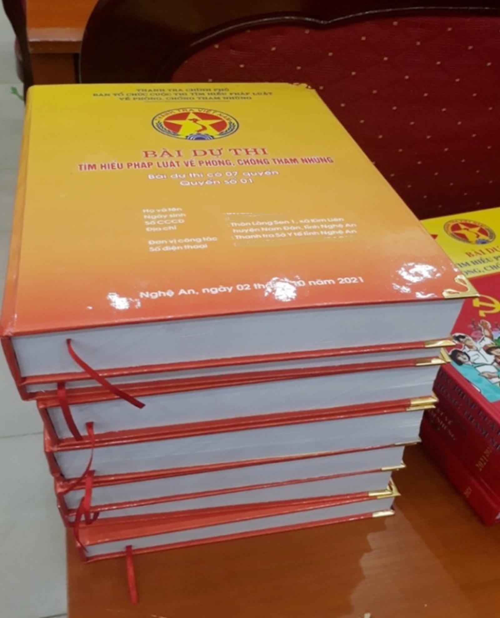 Bài thi của một cá nhân đến từ Thanh tra Sở Y tế Nghệ An với bộ 7 quyển, mỗi quyển có độ dày hơn 250 trang