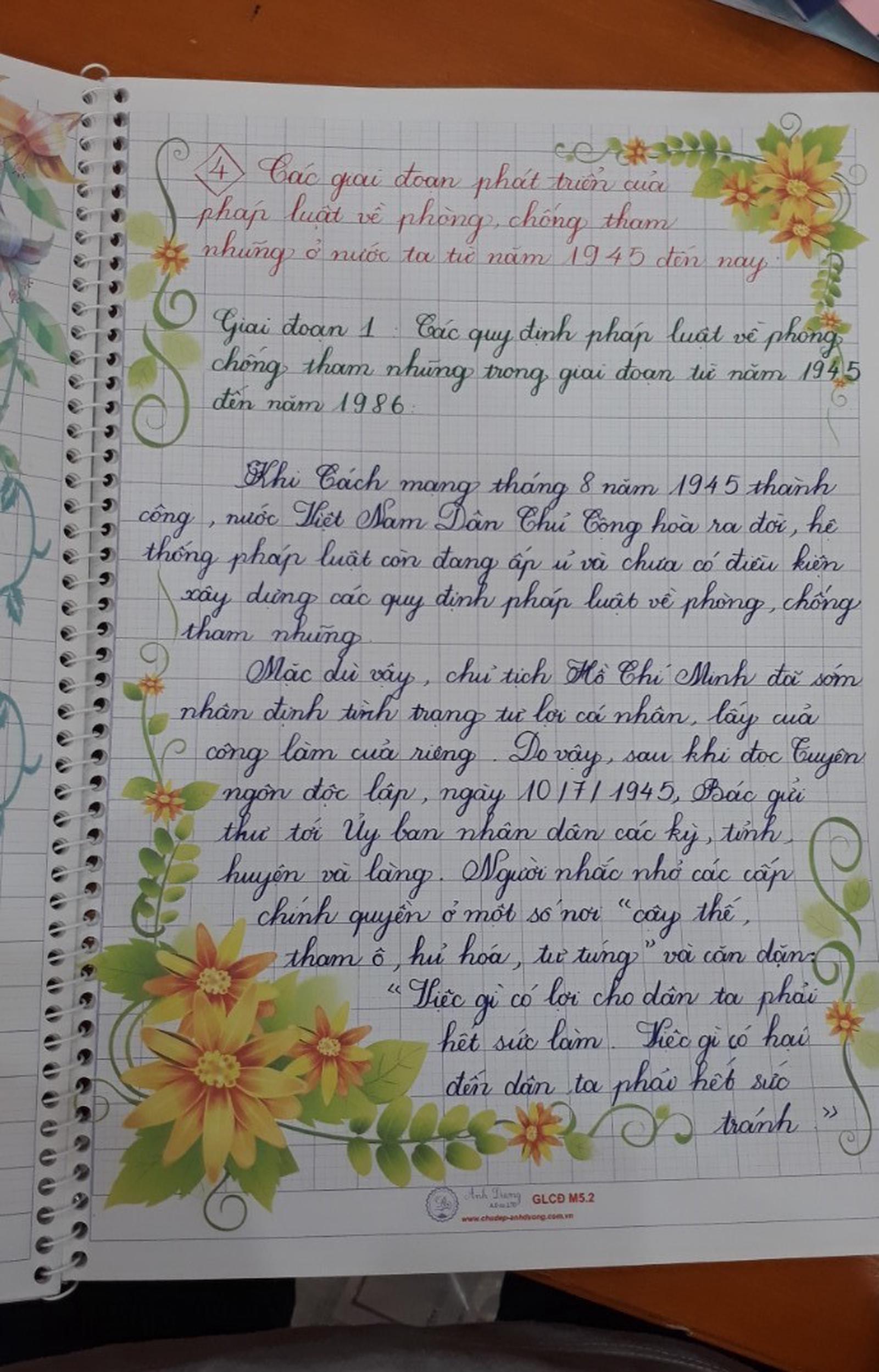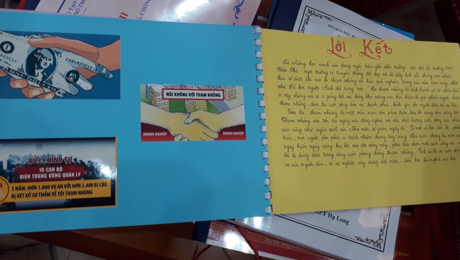 Bài dự thi của một học sinh lớp 12, Trường THPT Cẩm Phả, Quảng Ninh, không chỉ viết tay rất đẹp mà còn kỳ công tìm tòi những hình ảnh thực tế sinh động minh họa