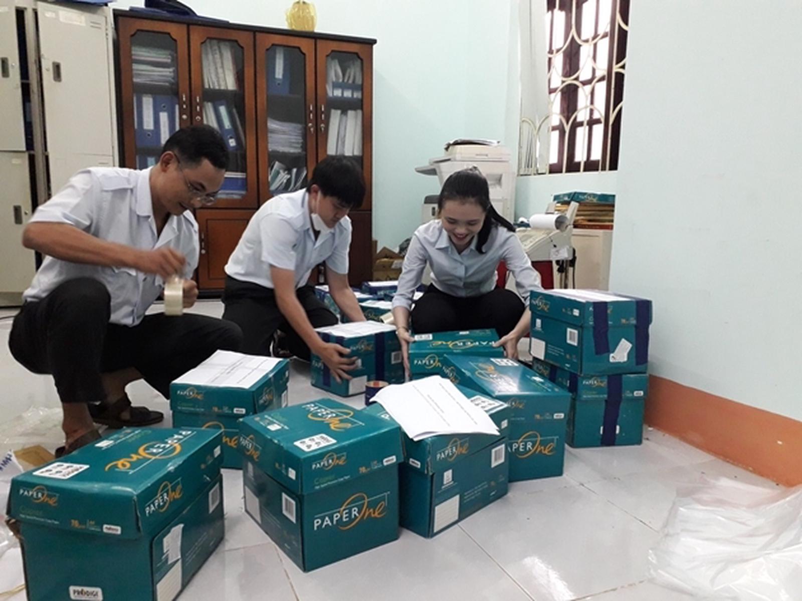 Thanh tra tỉnh Đăk Nông tổng hợp, đóng gói bài dự thi gửi về Ban Tổ chức. Ảnh: N.P