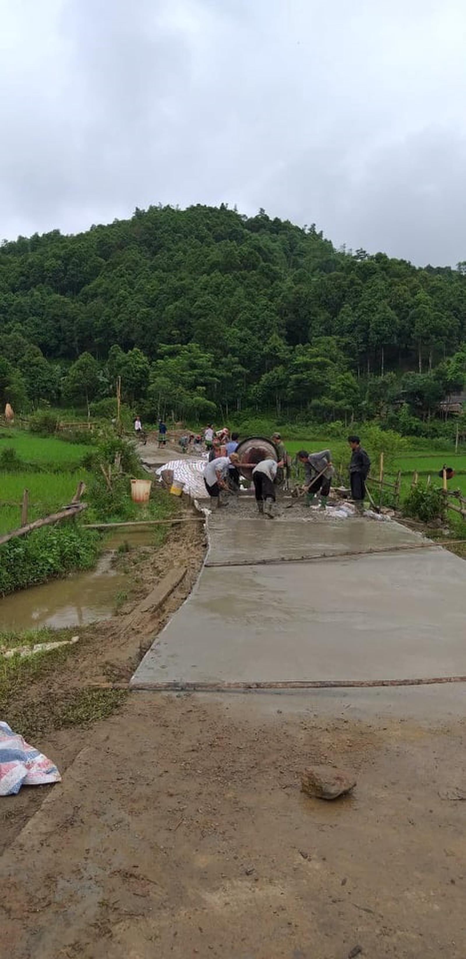 Nhân dân thôn Khuôn Bổ tích cực tham gia làm đường giao thông nông thôn. Ảnh: Bùi Bình