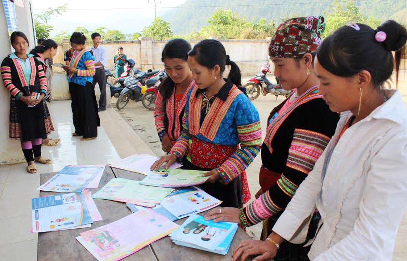 Tuyên truyền về chính sách dân số, tình trạng tảo hôn cho đồng bào ở huyện Sìn Hồ. Ảnh: Phong Lâm