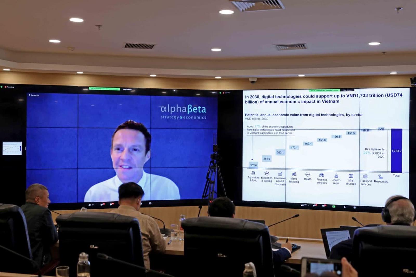 Đại diện nhóm nghiên cứu của Google trình bày báo cáo “Tiềm năng kinh tế số Việt Nam”, cho thấy, nếu được tận dụng tối đa trong nền kinh tế, công nghệ số có thể đem lại hơn 1,733 triệu tỷ đồng (74 tỷ USD) cho Việt Nam vào năm 2030. Khoản tiền này tương đương 27% GDP của Việt Nam trong năm 2020. Dự kiến, các lĩnh vực được hưởng lợi nhiều nhất là sản xuất, nông nghiệp và thực phẩm, giáo dục và đào tạo.
