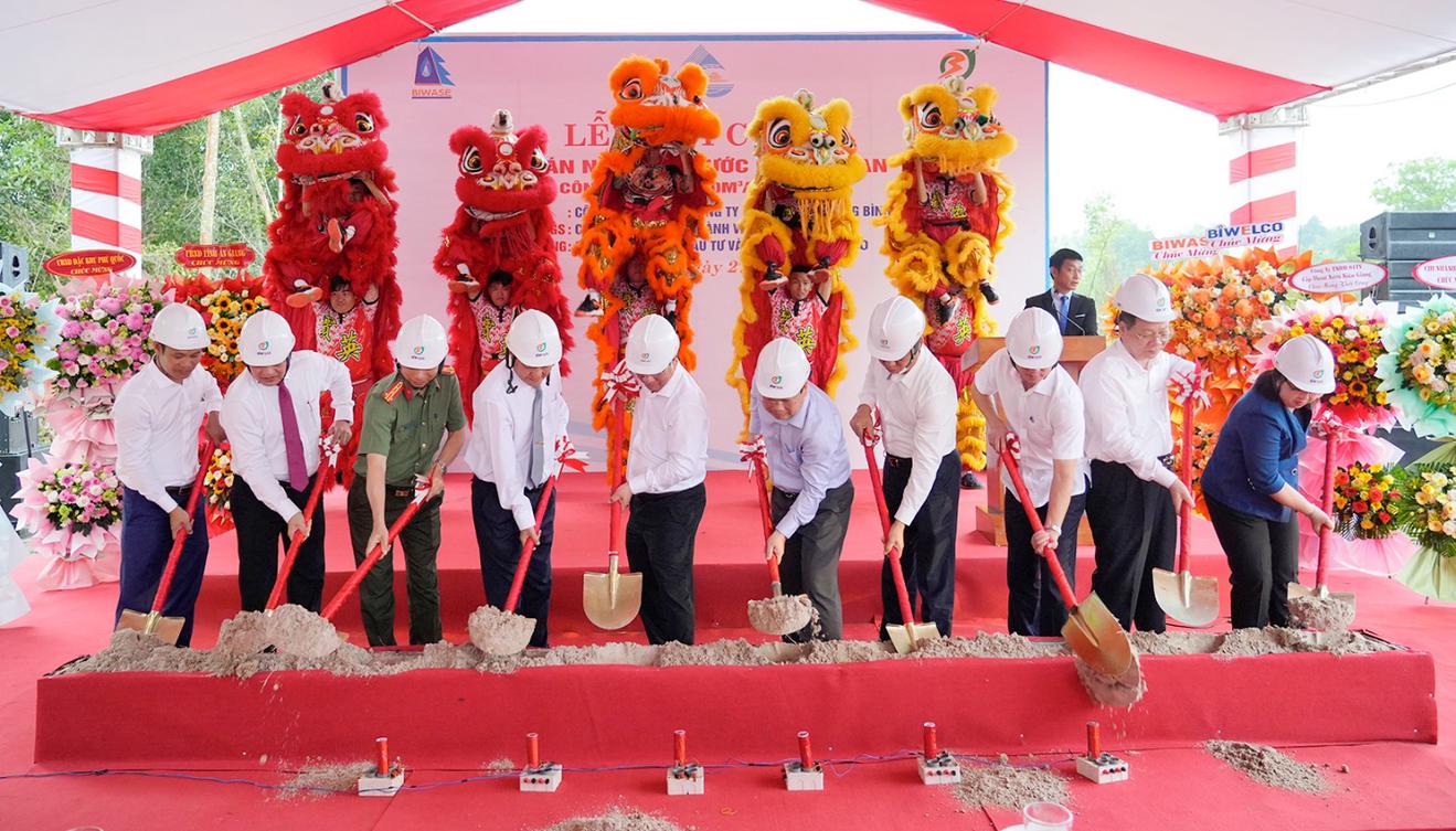 Đại biểu thực hiện nghi thức khởi công dự án. Ảnh: Cổng TTĐT An Giang